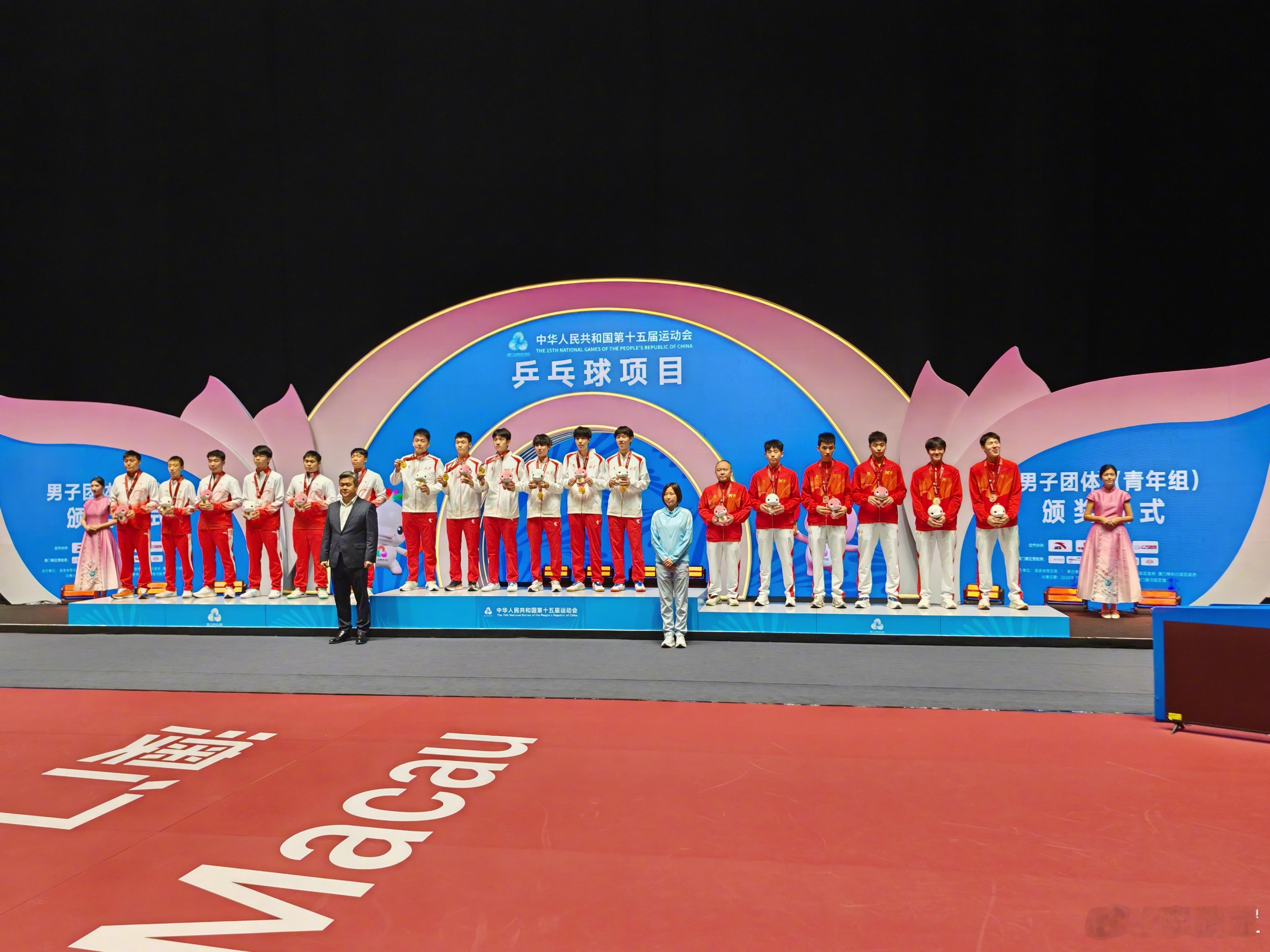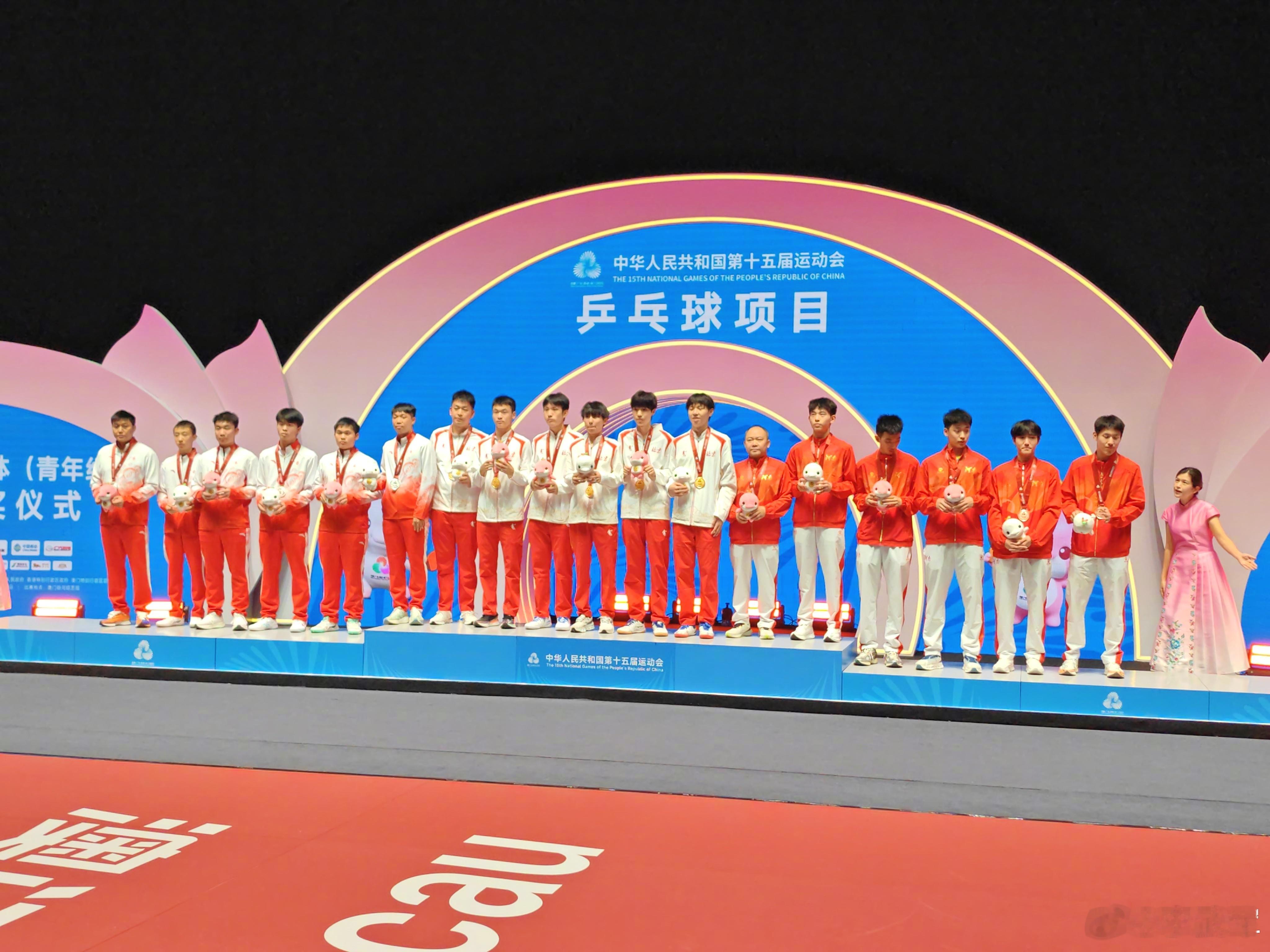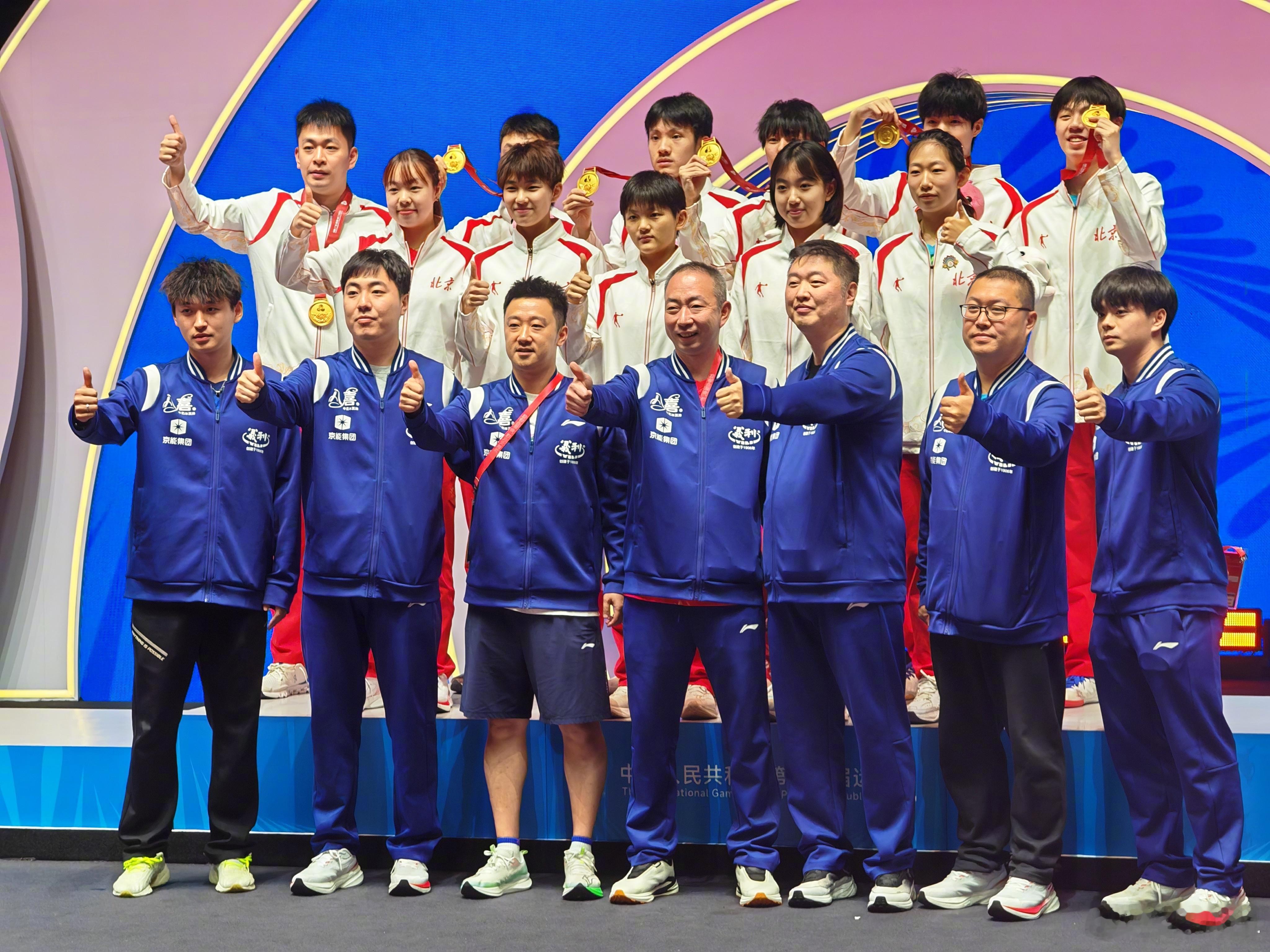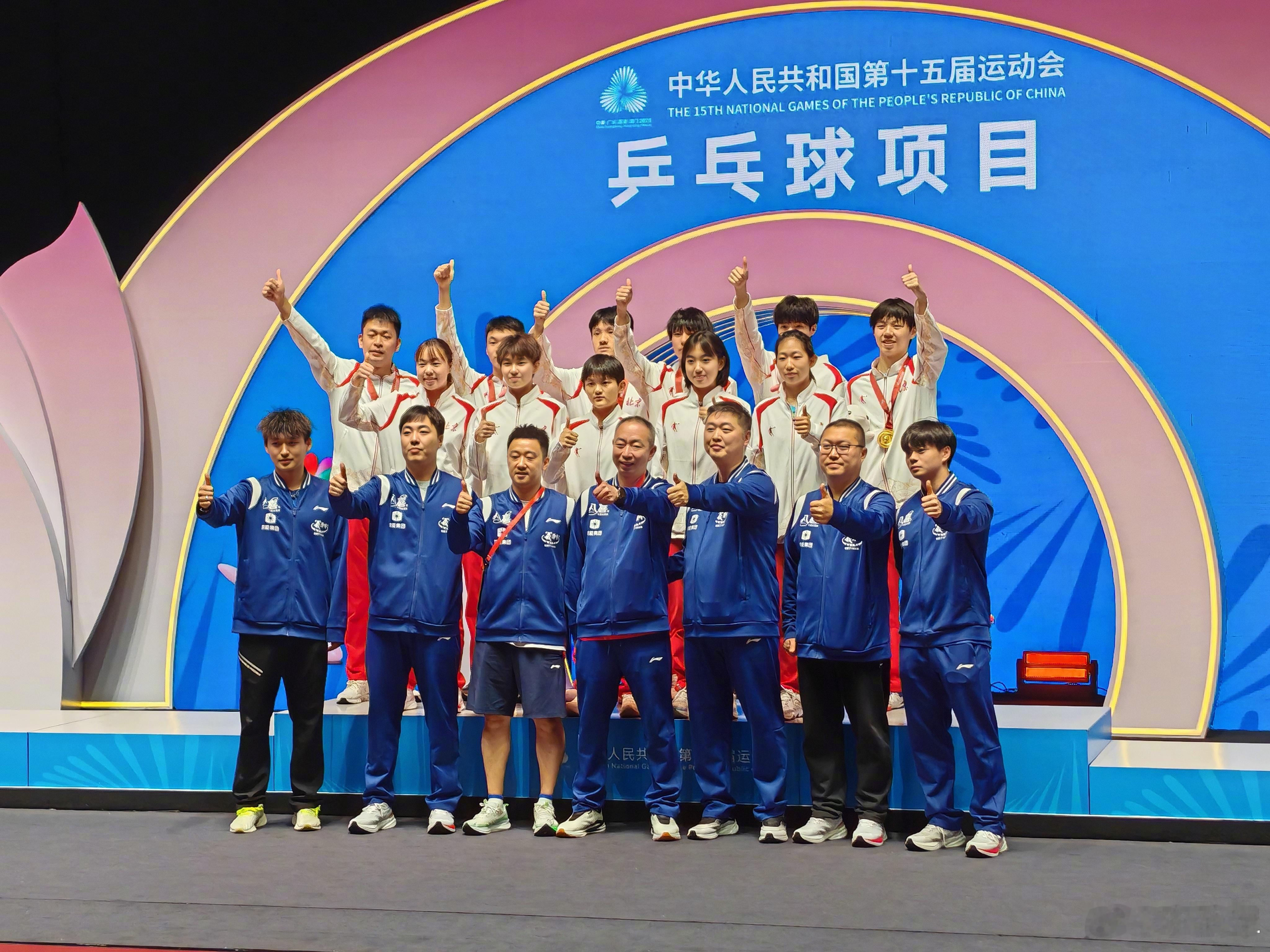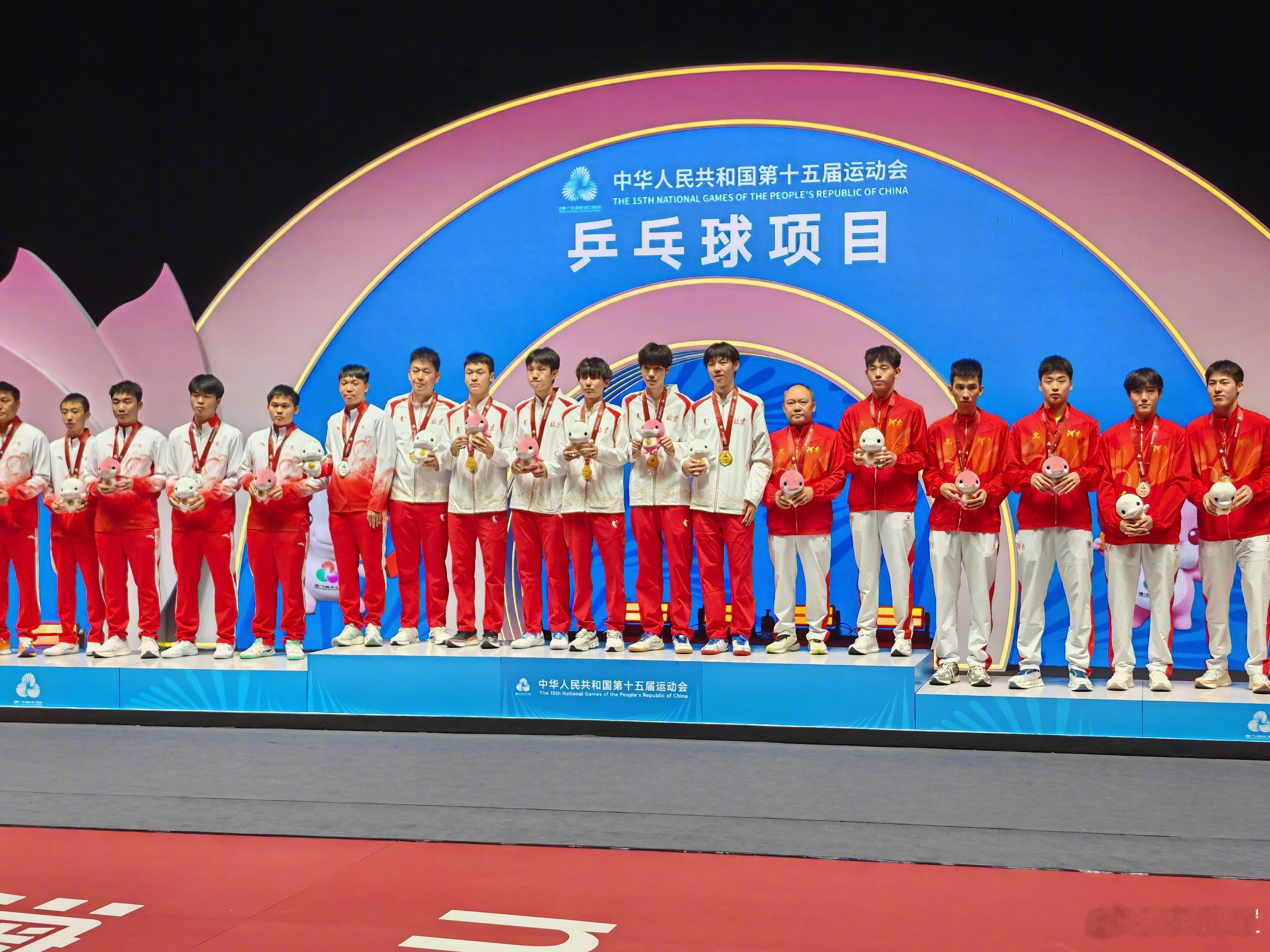 祝贺北京队夺得全运会乒乓球十八岁以下男团冠军!广东队夺得亚军!河南队夺得季军!