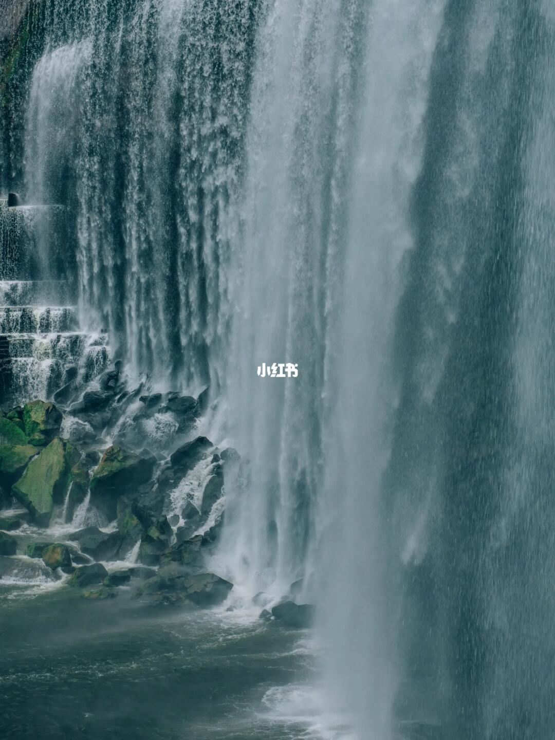走进洞里,光线瞬间暗了下来。巨大的瀑布从崖顶掉下来,仿佛贴着人脸一般,角度极为壮观,轰隆巨响,水气腾腾,雾气和阵阵阴风充斥整个山洞,令人窒息,好像到了另一个世界,令人心惊胆战,几欲先走