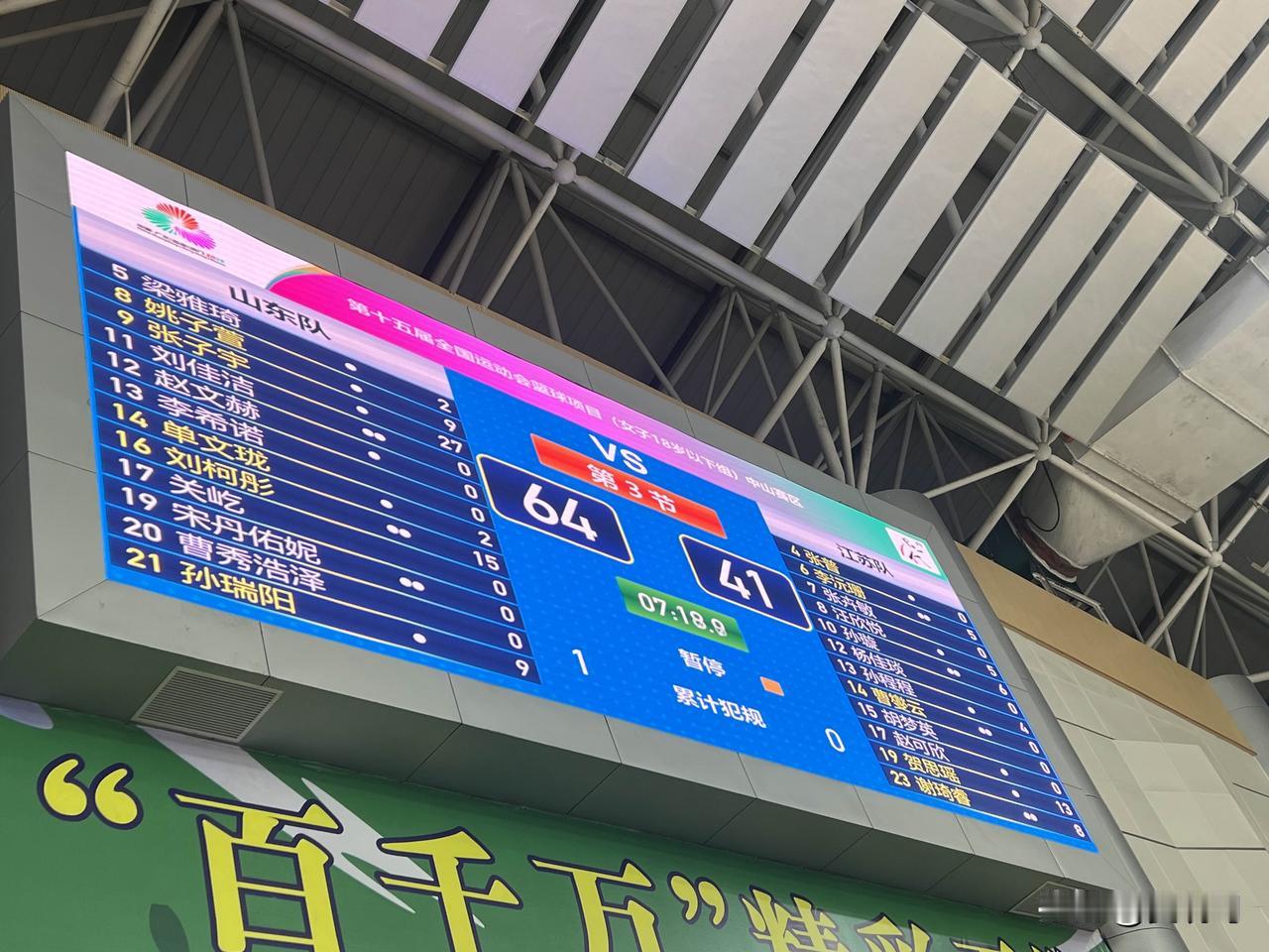 全运会决赛:山东u18女篮目前64:41江苏,张子宇27分。