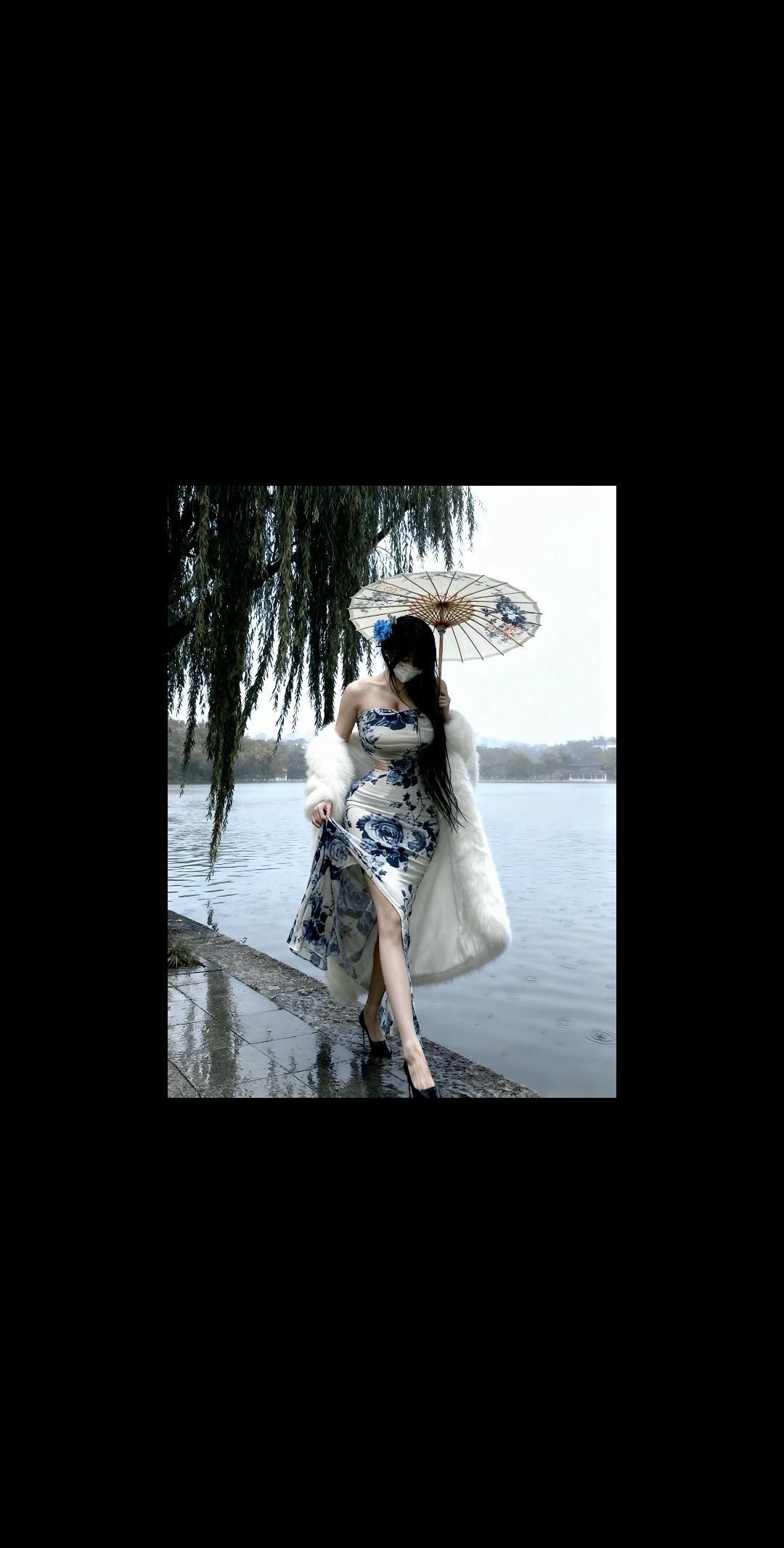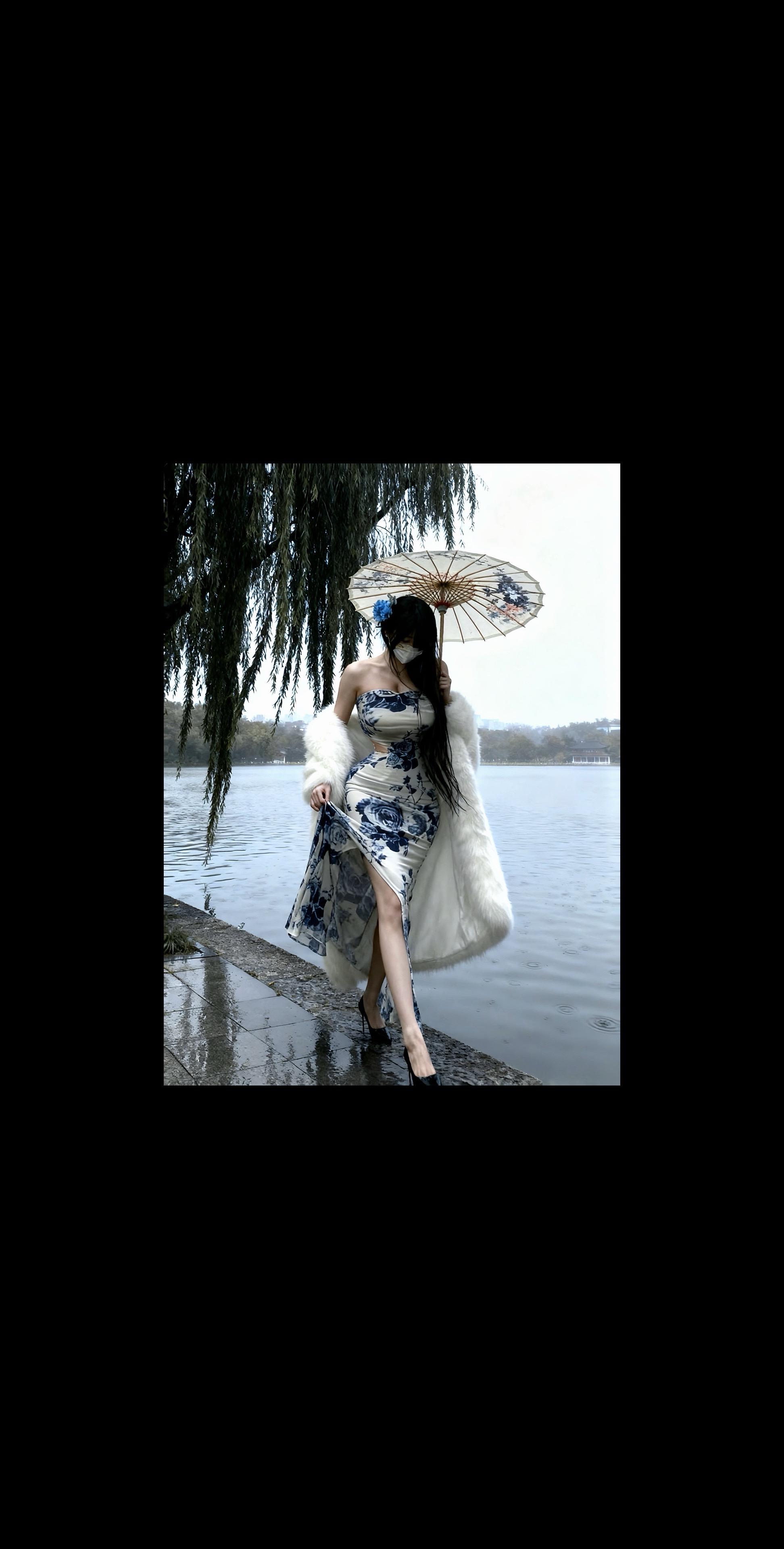 竹影浸在风里,指尖落向琴弦时,瓷青纹样正顺着旗袍漫成一弯浅溪。发梢坠着碎光,