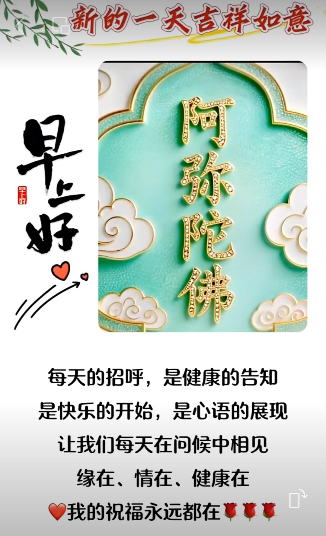 美麗靜好的清晨, 送上真誠的祝福, 祝願你開心無憂, 快樂平安人吉祥。 早上好![祈祷][玫瑰]