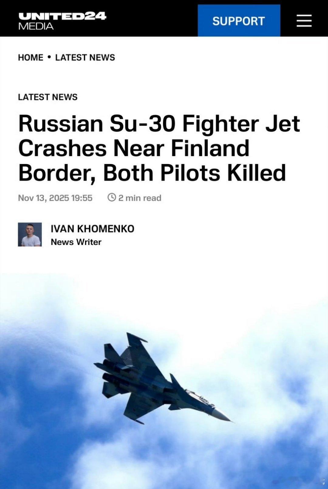 俄境内一架Su-30战斗机坠毁,两名飞行员死亡。