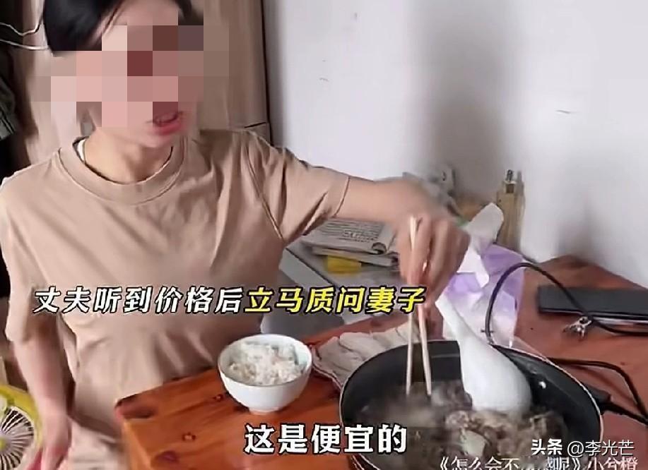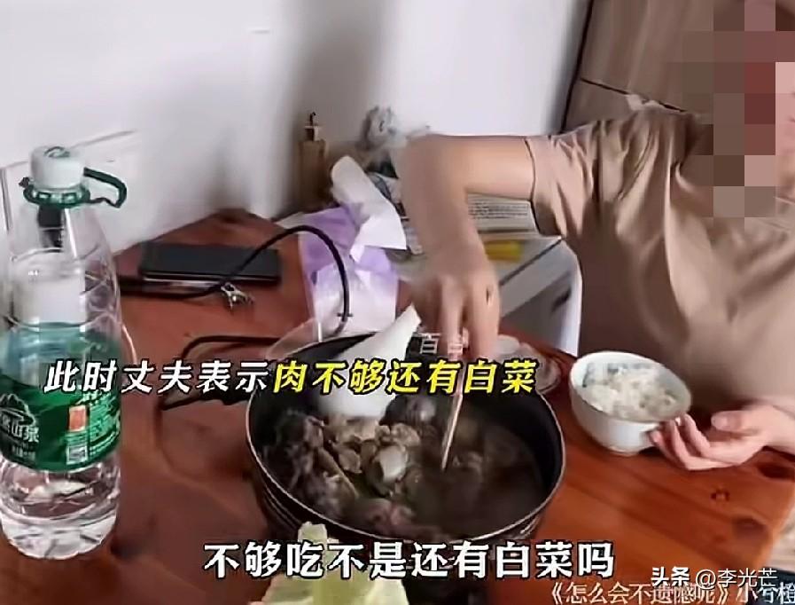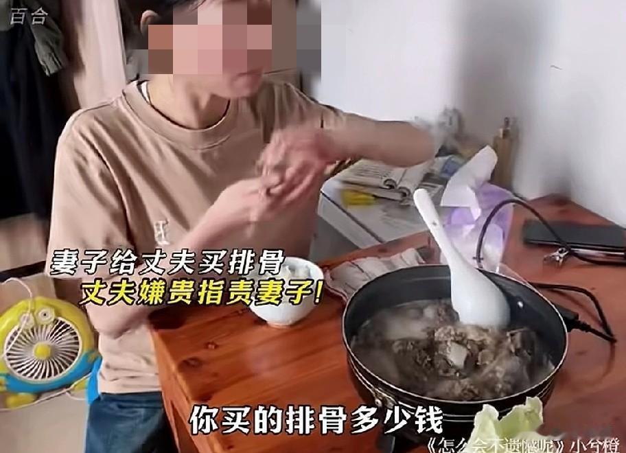 一女子花30块钱买了几根筒骨做晚饭,不料丈夫听到花30多吃一顿饭太贵了,让妻子节省点。妻子:这已经是最便宜的筒骨,排骨34,筒骨只要15元一斤。丈夫:就是15元一斤也要少买点,肉不够吃,可以吃白菜。妻子:每次都是你吃肉,你都不够吃,剩下的白菜都是我吃! 妻子说,少买一点,你不是不够吃,干了一天活已经很累了,回家你就想吃点好吃的。 丈夫说不够吃肉还有白菜,配菜可以吃,又不是只能吃肉,吃点其他的凑凑也可以啊! 妻子生气的放下筷子,每次你都是专门吃肉,那么能吃,剩下的白菜都是我吃。 妻子心酸的看着自己的白米饭,一口也没吃肉,流着眼泪说,你还好意思说,哪次买了肉不是你吃? 男子吃完也起身,没顾及妻子的委屈,反而还叮嘱她,这么贵,下次不要买这么多? 妻子扔下委屈的眼泪,说不买了不买了,以后天天吃白菜! 有人说女人还是要有底气,还是要有自己的工作,挣多挣少的都是自己的,手心向上的日子,谁也不会心疼。 说到底也不是肉有多贵,而是丈夫从没看到妻子眼里委屈与心酸,所以才会肆无忌惮的出口伤人。但凡他能心疼自己在家的老婆,都不至于如此为难她! 爱你的人生怕给的不够,恨不得把所有肉都给你吃。不爱你的人总嫌弃你要的太多,吃白菜都嫌多!