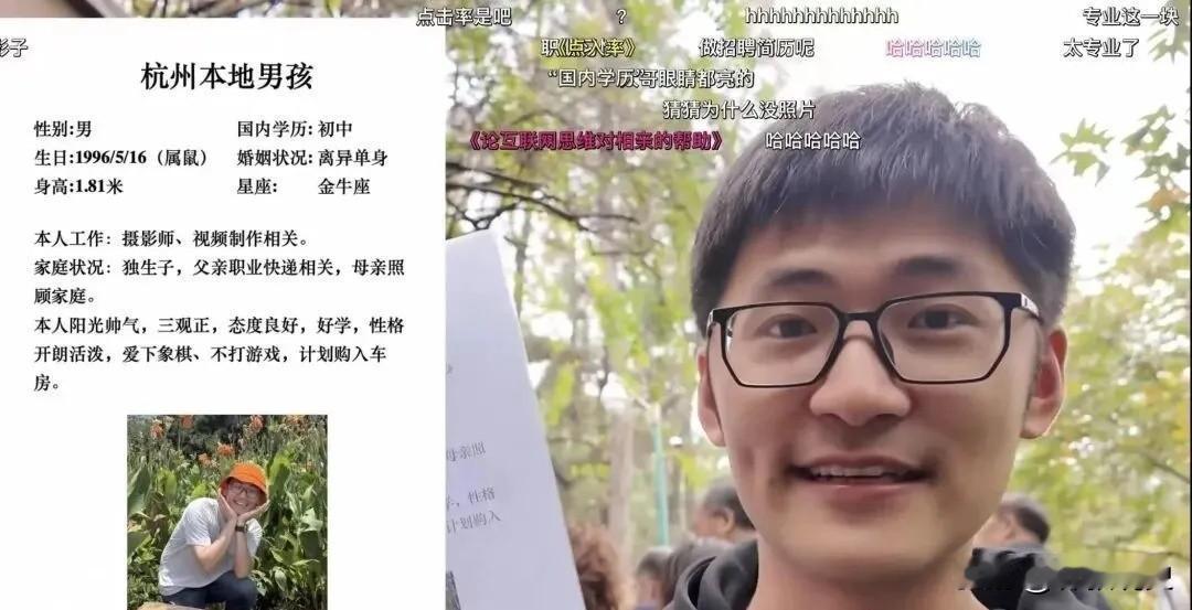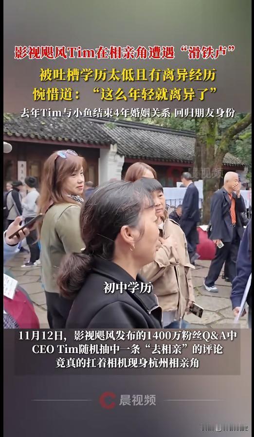 29岁影视飓风创始人、圆通速递总裁之子参加杭州相亲角被嫌弃“学历太低”。[听歌] 那天在杭州万松书院相亲角,一位29岁的杭州本地男士安静地站着。 简历上写着:初中学历,职业摄影师,父母普通工薪,计划购车购房。 几位阿姨驻足翻阅,摇头叹息,“学历太低了。” 没人知道,这个看似普通的年轻人,正是拥有1400万粉丝的影视飓风创始人潘天鸿。 这场引发全网热议的“相亲实验”,始于一场粉丝互动。 为庆祝账号突破1400万粉丝,潘天鸿随机抽取粉丝提议前往相亲角。 他刻意隐去了真实背景,英国肯特大学电影系毕业,2015年创立的公司年营收破亿,父亲是圆通速递总裁,取而代之的是一份精心设计的“低调版”简历。 现场阿姨们聚焦于纸面上的硬指标:初中学历、离异记录、非体制内工作,这些标签瞬间掩盖了其他可能性。 一位阿姨直言不讳:“学历太低将来孩子教育怎么办?” 另一位惋惜道:“这么年轻就离异了……”在这个由父母主导的婚恋市场中,潘天鸿真实的创业能力与成长潜力反而成了看不见的秘密。 在相亲角的评价体系里,一个人的价值被简化为学历、房产、婚姻状况等可量化指标。 而创业精神、学习能力、发展潜力这些真正影响人生质量的要素,却因难以衡量而被边缘化。 这种错位映射出当下社会对“成功”定义的单一与多元之间的张力。 这场实验给我们最深的启示或许是:在量化指标之外,那些无法被简历捕捉的品质——韧性、创造力、学习能力,往往才是决定一个人能否幸福的关键。 这场实验在网络上意外掀起了关于婚恋评价体系的讨论,让我们来听听网友们是怎么看待的。 “能创建千万粉丝平台的人,在相亲角却成了‘不合格产品’,这本身就很说明问题。” “笑死,阿姨们看简历的样子像我HR面试,结果放走了个CEO!” “原来亿万富翁也需要相亲角的毒打。” “站着说话不腰疼,谁家父母不想孩子找个靠谱的?学历和家境是最基本的诚意。” “问题是‘靠谱’的标准是不是太窄了?马云当年还是老师呢。” “两边都没错,只是信息不对称。父母那代靠稳定指标降低风险,年轻人更信个人能力。但现实中,没几个潘天鸿,多得是真·初中毕业的打工族。” “这场实验最妙的不是打脸,而是揭示了一个悖论,我们教育孩子要创新、要突破,却用最保守的标准帮他们选伴侣。” “父母用过去三十年的经验,试图帮孩子应对未来三十年的变化。” 如果你去相亲角,会怎么写自己的“三行简历”?欢迎在评论区分享。 信息源:九派新闻、潇湘晨报、快讯等