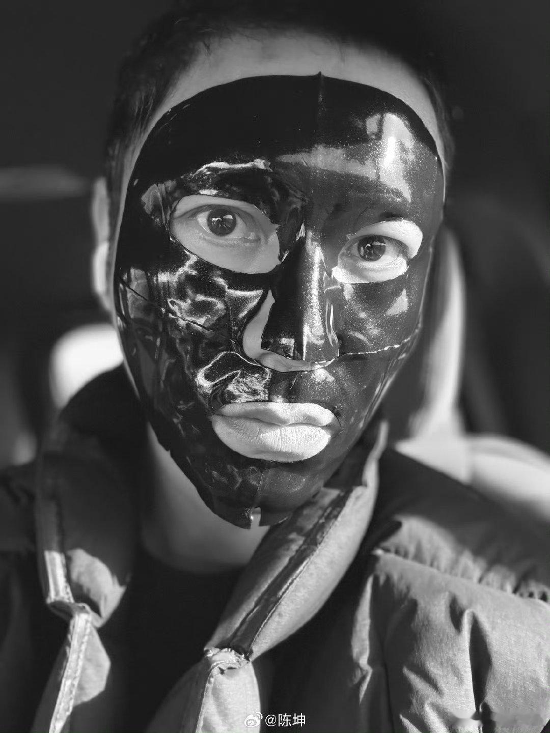 陈坤敷黑色面膜反差感拉满!乍一看自带"惊吓"效果,护肤时刻也不忘自带喜感~