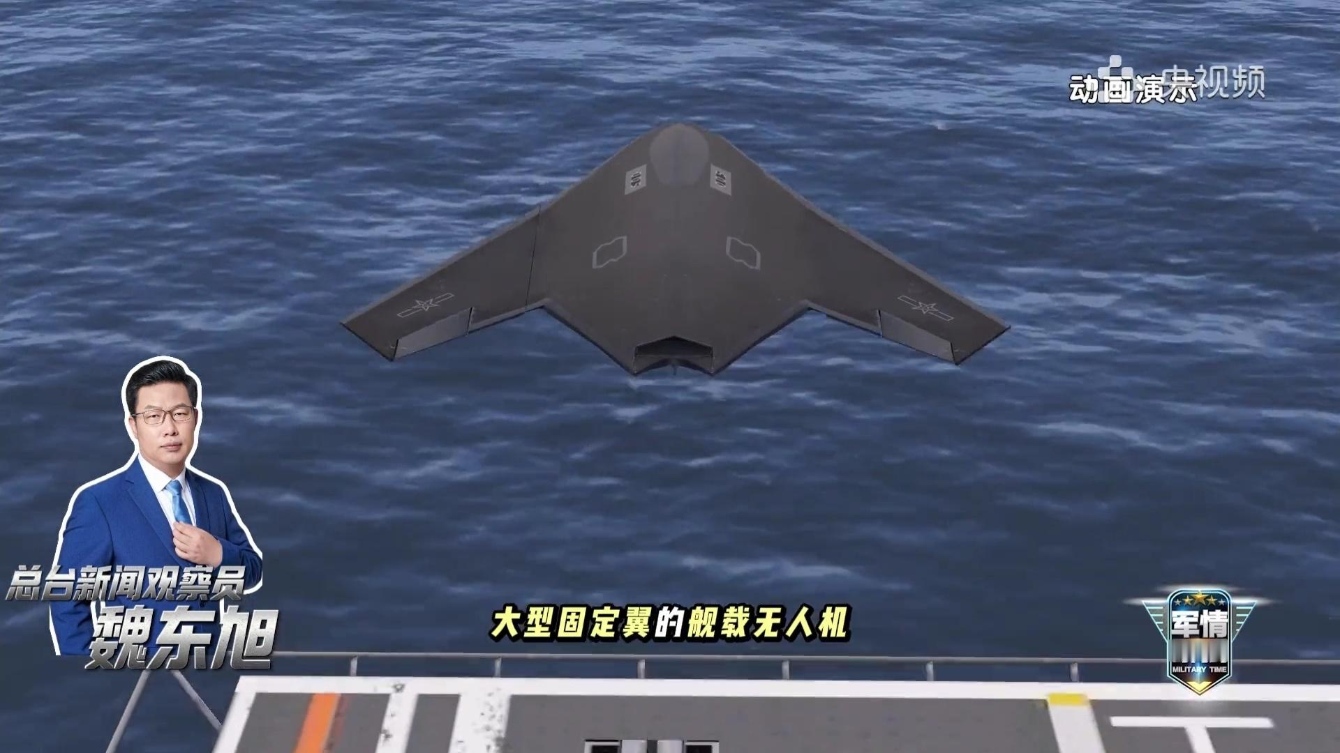 央视CG:攻击-21从076弹射起飞 ,10架攻击-21从076上空编队飞过。