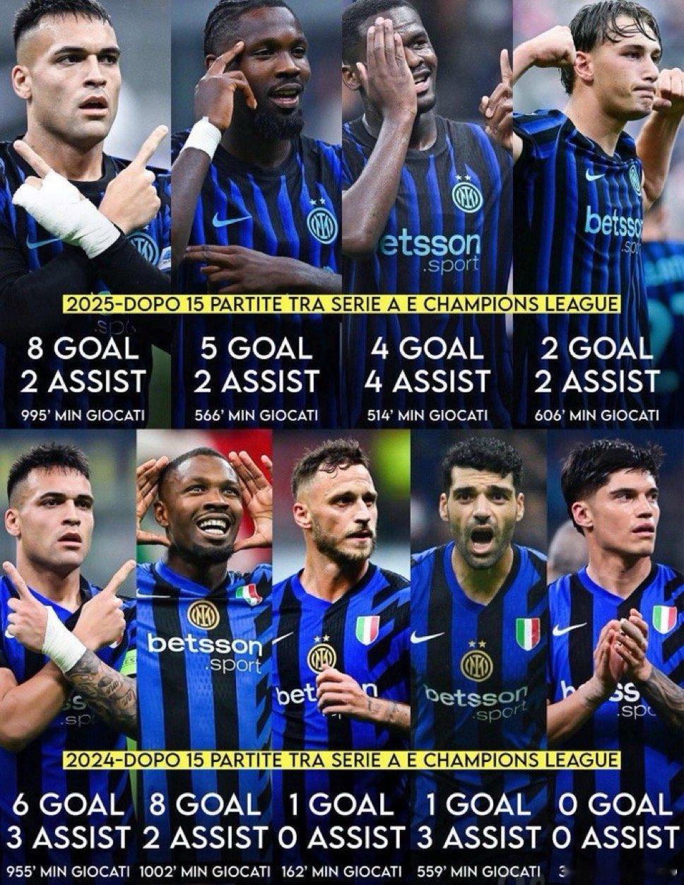 本赛季意甲和欧冠总计15场比赛后前锋的数据如下博尼和三埃真是巨大的提升👍