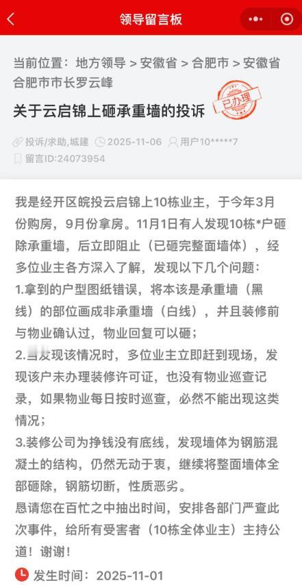 合肥经开区皖投新房装修承重墙被砸,原来这个里面有这些误会啊,装修图纸都能错,承重墙标错,然后装修公司发现了,然后把钢筋切断。 承重墙都这样搞掉了,还能修复吗?这个小区单价在两万四一平,位置非常好,当时卖的时候都说除了开发商找不出毛病。但是就是这样的地段,还没清盘。这一栋楼的估计后面会有便宜的二手房出来。