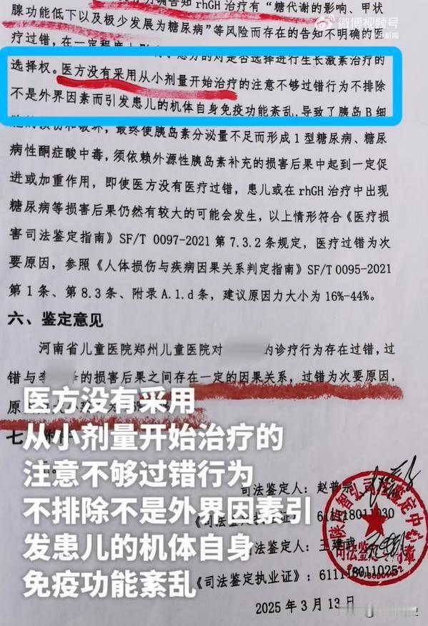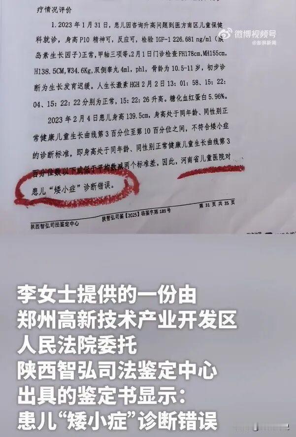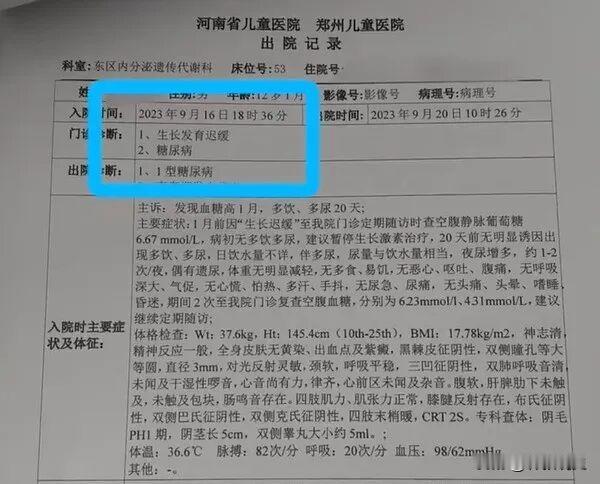 14岁男孩被误诊“矮小症”,注射生长激素半年后确诊I型糖尿病。[听歌] 河南郑州一位家长近日向媒体反映,自家孩子因身高偏矮被当地医院诊断为“矮小症”,随后接受了为期半年的生长激素注射治疗。 令人痛心的是,孩子在治疗期间被确诊为I型糖尿病,需终身依赖胰岛素。 后续司法鉴定指出,医院在诊断环节存在失误。 类似案例并非孤例,杭州一名12岁儿童使用生长激素后出现甲状腺功能异常,广州一名9岁男孩出现股骨头滑脱。 这些事件共同指向生长激素治疗的潜在风险。 医学上对矮小症有明确标准:身高须低于同年龄、同性别正常儿童身高标准的第三百分位,或年生长速度低于5厘米。 除此之外,确诊前还需排除遗传、营养、慢性疾病等影响因素。 不少家长因对孩子身高过度焦虑而盲目求医,我国有超过七成家长希望子女身高超越遗传潜力。 这种普遍心态催生了生长激素的滥用现象。 生长激素治疗存在不可忽视的健康隐患。 常见副作用包括血糖异常、甲状腺功能减退、股骨头滑脱等。 因此治疗期间必须定期监测血糖、甲状腺功能和骨龄变化。 面对身高问题,家长应保持理性。 儿童生长模式存在个体差异,“晚长”现象在临床中相当常见。 若孩子年生长速度保持在5厘米以上,通常无需过度干预。 目前,网络上针对此事件也展开了激烈讨论。 “看了真心疼,孩子太受罪了!家长也是爱子心切,谁能想到正规医院也会误诊?” “我家孩子班里倒数第三,去医院检查医生说没问题,就是遗传。现在想想真是万幸。” “生长激素真不能乱用,邻居家孩子打了半年,花了十几万,就长了2厘米,还不如多运动。” “作为过来人提醒:一定要去三家医院找专科医生,别轻信小医院的诊断!” “现在身高焦虑太严重了,到处都是增高广告,家长都快被逼疯了。” “请问怎么判断孩子是晚长还是真的矮小?我家孩子比同龄人矮半个头,好纠结。” “生长激素不是营养品,而是严肃的处方药。家长在寻求治疗时,不妨多问几个为什么,多听几家医院的意见。” “与其执着于数字标准,不如关注孩子的身心健康全面发展。” “均衡营养、充足睡眠、适度运动和良好情绪,才是促进儿童生长的最安全途径。” 亲爱的头条网友们,关于孩子身高问题,您曾经做过哪些尝试?在生长发育方面有什么经验或教训愿意分享?期待在评论区看到您的真知灼见! 信息源:澎湃新闻、齐鲁晚报
