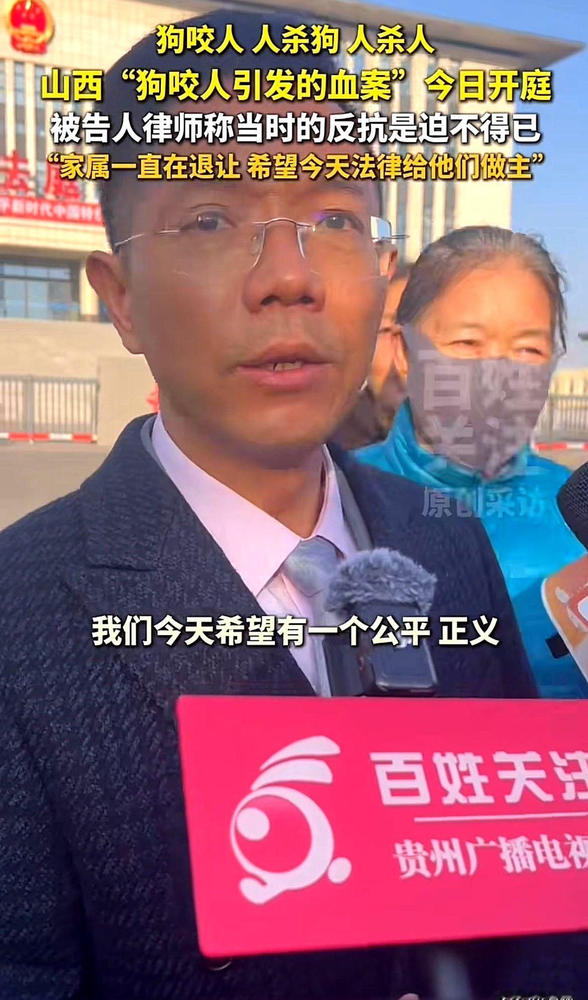 这位就是山西狗咬人事件中,被告方的辩护律师。 他为被告做的不是防卫过当,也不是过失伤人,而是为被告做的无罪辩护。 他说,在当时的环境和形势紧迫下,被告人的反抗是迫不得已,他今天希望有一个公平,正义。 今天参加旁听的市民代表也表示,兔子急了还咬人,何况是人呢,他就是被逼急了。 看来,不管是专业的律师,还是普通群众,大家都倾向于被告。 最终,会有一个什么样的结果,大家拭目以待吧。 一场风波骤起,真相却没有那么容易揭晓。 在这起备受瞩目的案件中,被告人的行为是正当防卫还是另有隐情,成为围绕整起案件的核心争议点。 无罪辩护,是辩护律师明确的立场,这一充满挑战的举措能否让法律和公平找到平衡,牵动着公众的视线。 旁听席上,一些市民的声音显得格外真切。 “堪比一部心理悬疑片啊。”一位旁听市民在休庭时感叹道。 他提出的比喻并非没有道理,因为案件真实而复杂:普通人被逼入绝境时做出的反应,绝不仅仅是一次本能的动作,而更像是一个对生存压力的极端表达。 但问题的核心在于,这样的反击是否已经越过了法律的界限。 法庭上的本质争议是 “界限” 的模糊。 辩护律师出示了一系列证据,详细分析了被告所处的情势。 他认为,在当时迅速恶化的情境中,被告已经被逼到了一种“非此即彼”的极端抉择,无论如何反抗,其行为都无法避免引发后果。 他强调,犯罪意图的缺失,以及被告的心理状态,都是无罪的关键依据。 而这一切需要审判者更仔细地考量细节环境,摒弃将一种行为简单归类为犯罪的定论。 从旁听席的角落里,有一位市民低声评论:“律师辩护得很精彩,很多细节部分甚至让我们这些普通观众都不得不重新思考。我们之前相信的那些所谓片面定论,真是那么坚不可摧吗?”这样的声音,似乎开始反映出舆论的微妙变化。 最初对被告行为的批评,现在反倒因为辩护方的说辞,而让部分旁观者产生了疑问和共情。 不过,也有观点截然不同的旁听者表示担忧:“如果完全无罪辩护成立,是否会导致对某些潜在行为的纵容呢?”这引发了一种对法治与人性平衡的深层次思考。 大家能够理解某些行为的无奈,但对于案件后续如何影响社会,又抱有一定忧虑。 从情感到法律,这场争论注定不会有一个简单的答案。 值得注意的是,整个案件的局势不仅仅依赖辩护词或旁听者的反应,最终还是需要通过证据来判断。 在审判中,一些关键证据,如事件发生时的记录、相关人员的证言,正在逐步被引入。 而正是这些内容,正在逐步调整舆论的视角。 案件走到这个阶段,显然已经超越了单一性。 而从旁听者到律师的态度变化,其实也折射出了一种更大的社会焦虑。 究竟道德如何与法律相交织? 是否真正可以在情与法中找到某种平衡点? 很多旁听者悄悄走出法庭时都是满脸凝重。 最终的审判结果尚未尘埃落定。 在等待结果的这段时间里,许多人开始在内心默默揣测与反思——换作是自己,在那样的情况下,又会如何选择? 这种代入式思考让每个人不仅是在评判案件,也是一次对内心底线的再探究。 您的看法呢? 如果法律与情感碰撞在一起,又该如何取舍? 明里公平律法谈判,而暗中又何尝不是道德的考验。 我们或许都应该深思——是站在正义的一边,还是那无奈的一方? 信源:山西“狗咬人引发刑案”进展,被告律师:被告人一直在退让!-江宝观点