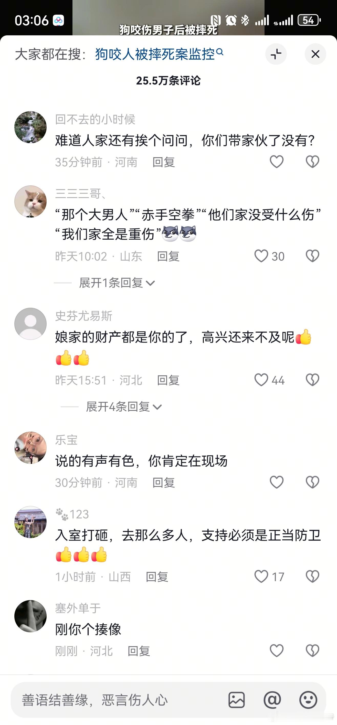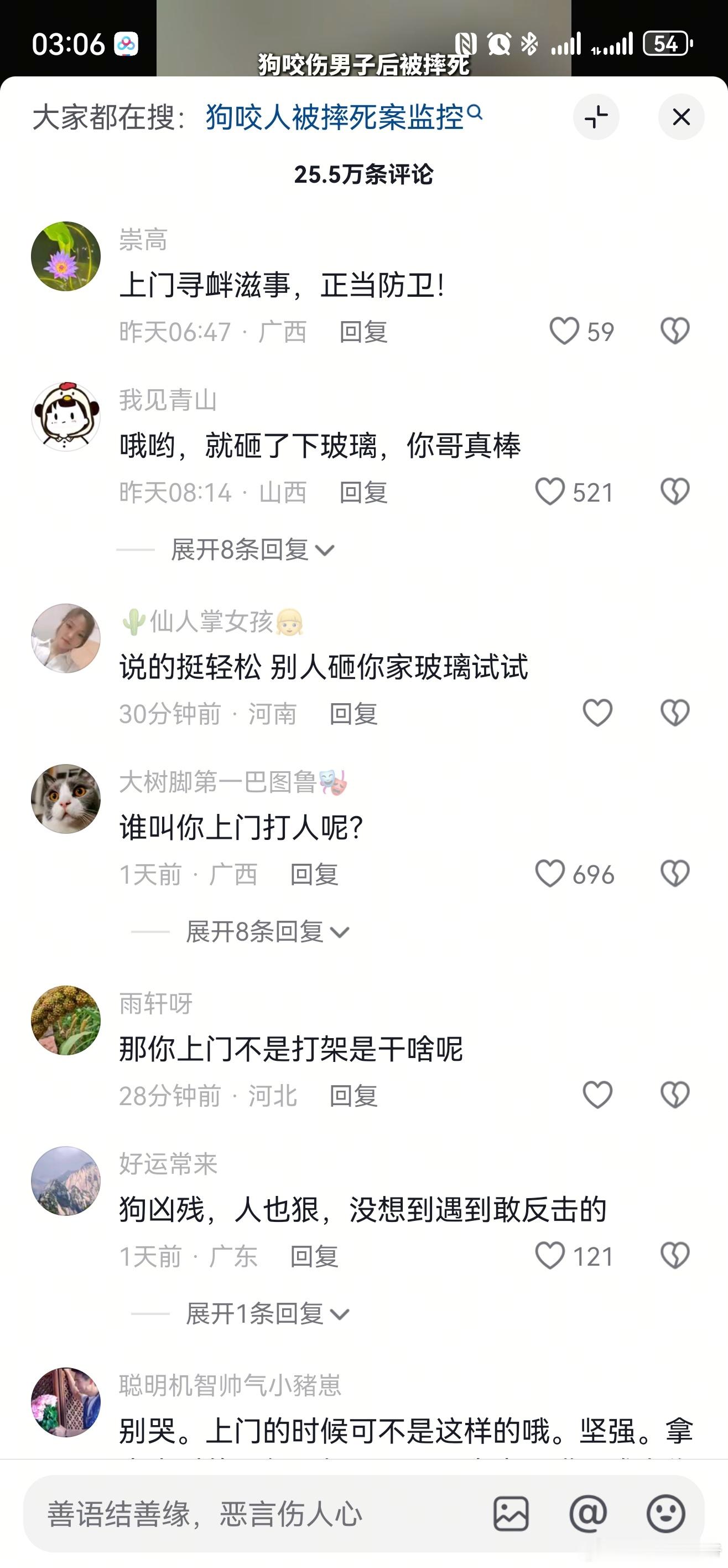 省流版,给你们汇总了下下狗咬人被邻居摔死后,主人上门打砸却被反杀的一些细节:~ 被告人家门是锁的,并不是网传的处于敞开状态; ~ 破坏被告人门窗,手持铁锹等物品; ~ 先行殴打被告人,且多人动手; ~ 被告人有退让行为最终被逼至墙角; ~ 被告人一家共报警五次;正常人,哪叫得来9个人为自己血拼的?所以你觉得被告人属于正当防卫吗?