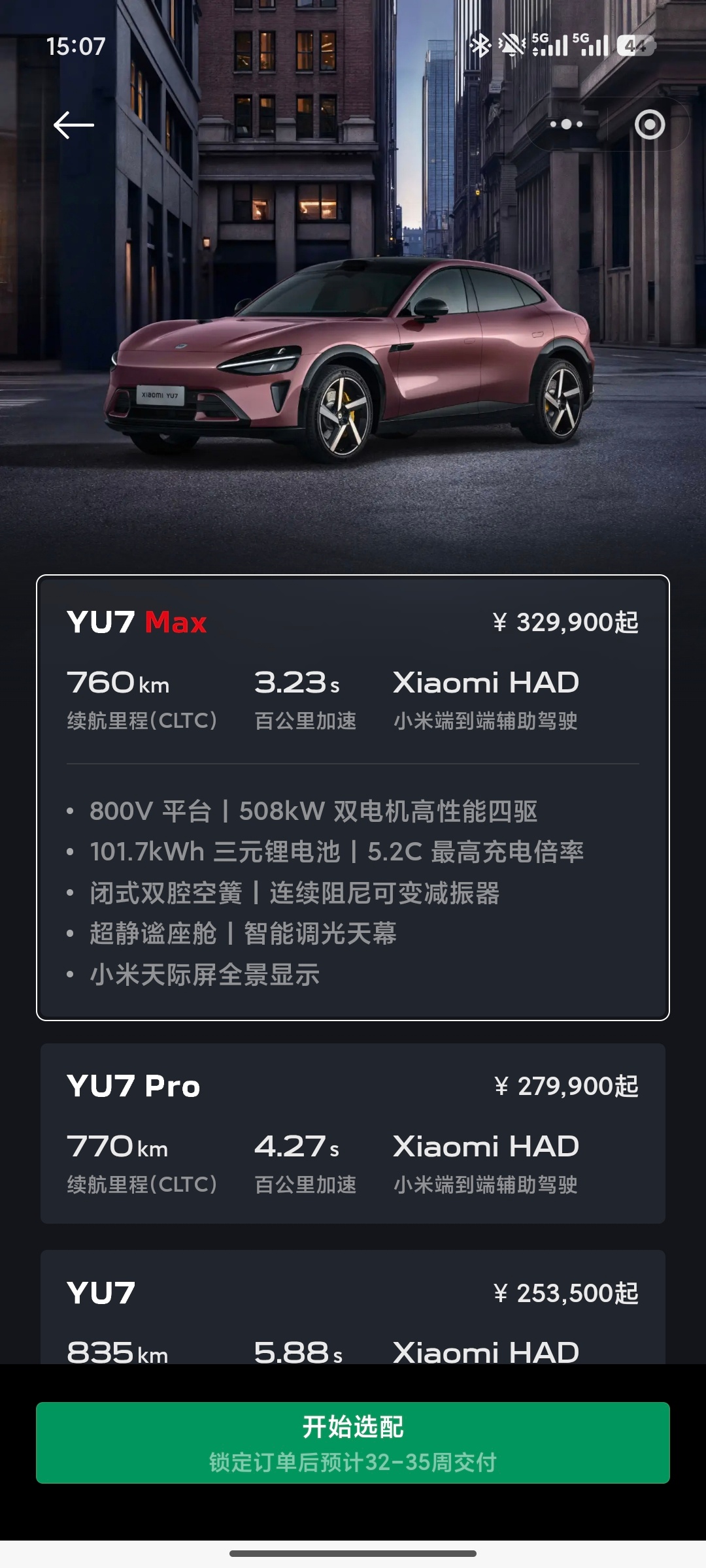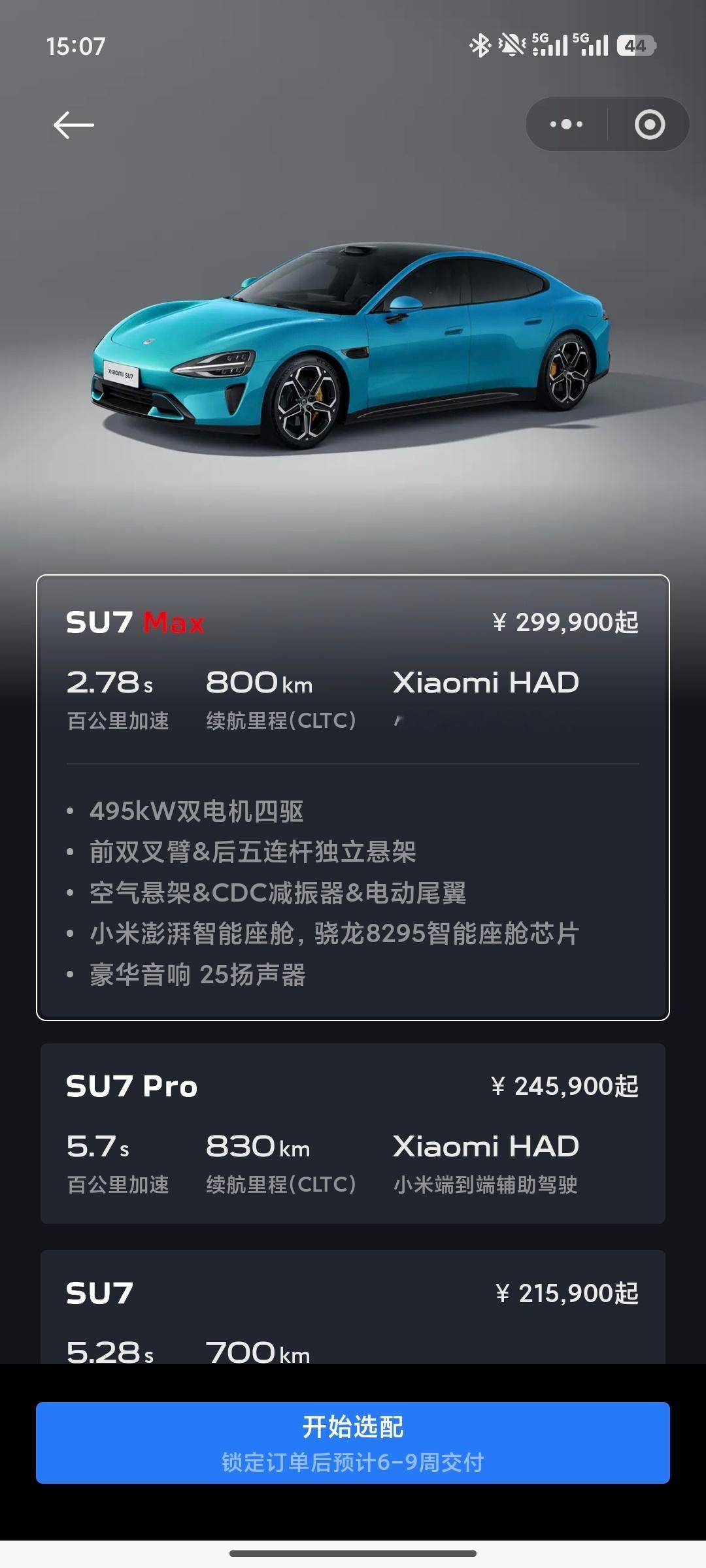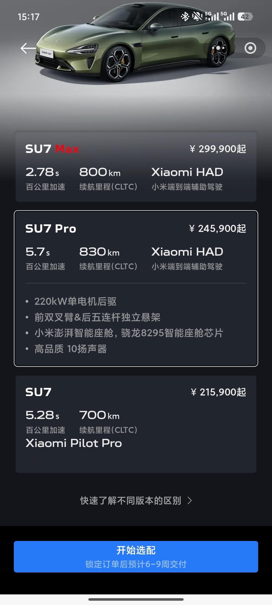 前几天我就说,不要乱传播小米SU7改款、加价的消息,一切以官方为准,否则会扰乱市场节奏。目前,没有看到任何一个小米官方说明改款的消息,甚至没有像之前兜底购置税的时候那样,有销售群的消息。目前小米SU7,锁单之后交付依然需要29-32周。小米SU7 Pro/Max,则是仅需6-9周,交付时间确实比较短了。小米SU7 Ultra,需要6-9周。小米YU7系列,普遍需要30周以上。客观来说,我也认为小米SU7的改款将近,这是事实。配置和价格确实只能靠猜,不过有不少粉丝留言,就等改款再订车了。
