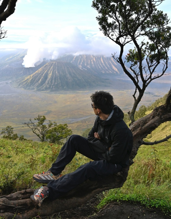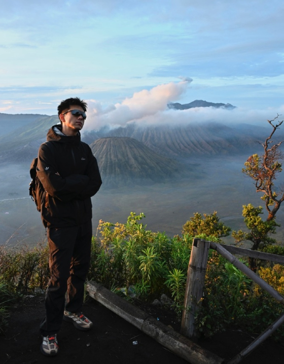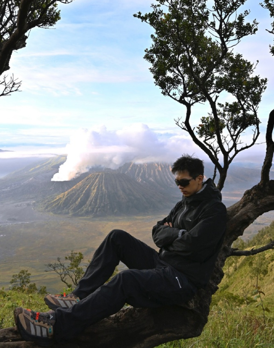 李现前往 Bromo 火山完成打卡,晨光中定格的身影与火山浓烟、熔岩平原同框,自然景观的壮阔与个人探索的惬意相互映衬。奔赴远方的选择,彰显对生活的热爱。
