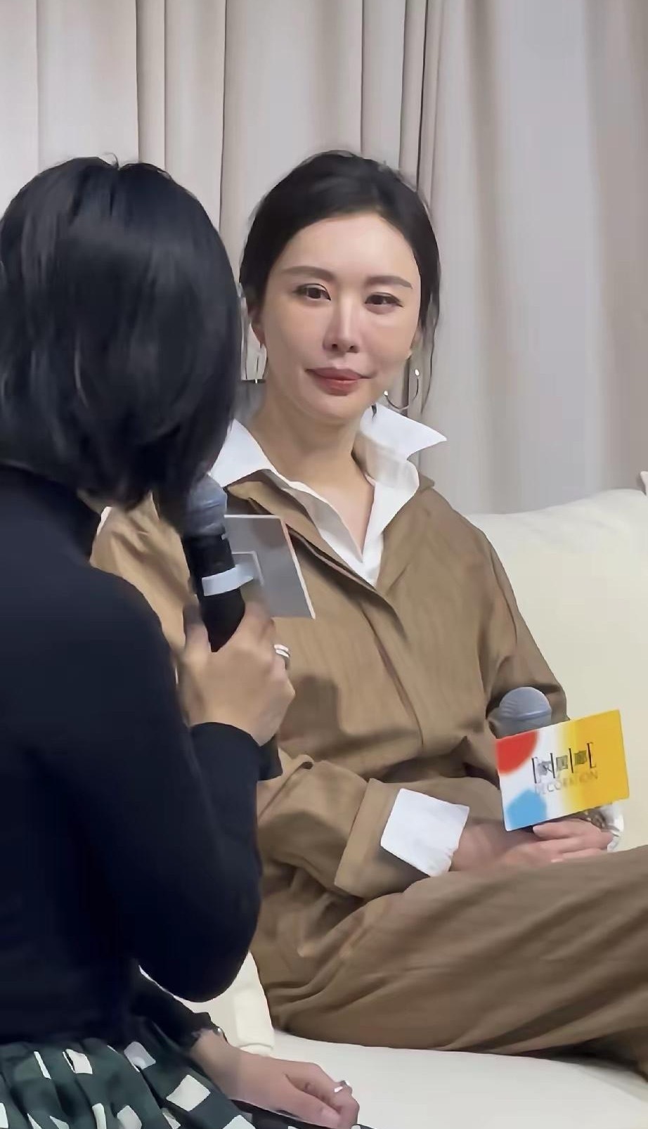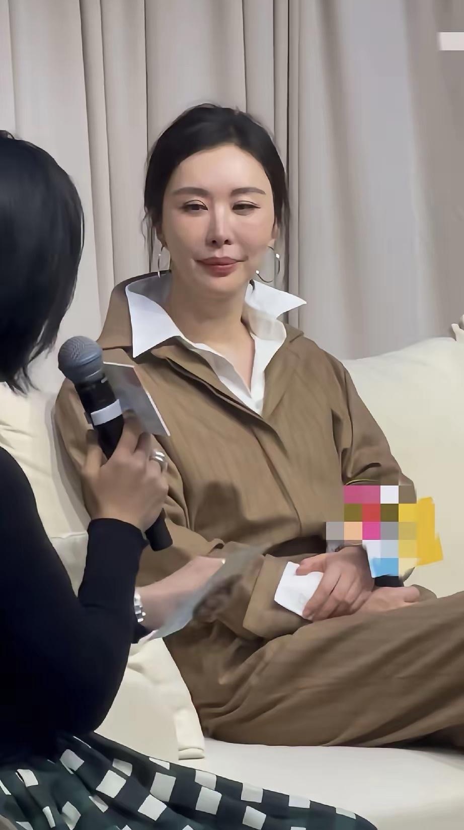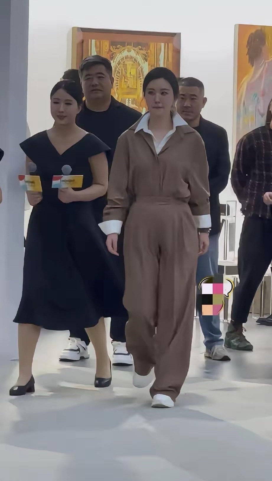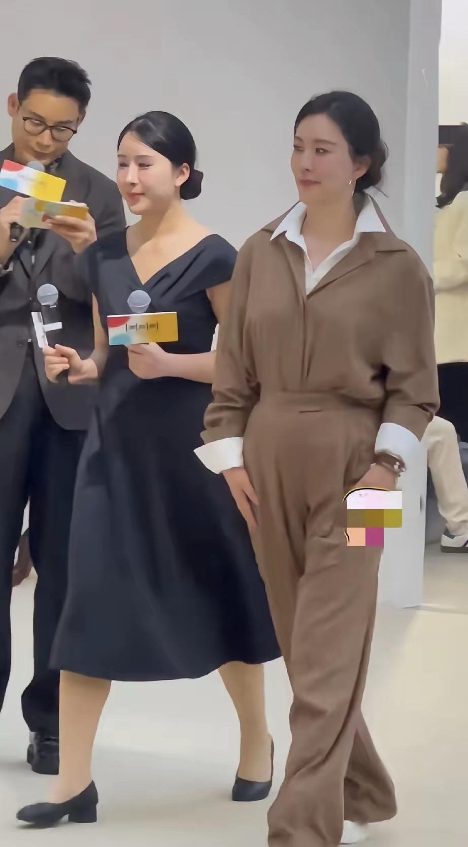 田朴珺怎么变成这副模样了?不光是脸僵,连身材都臃肿了不少……她穿一身卡其色连体裤,打扮成精英女强人模样,可边走边抿嘴的表情,显得不够大方,有点撑不住场子。采访的过程中,表情也木木的仿佛没有往日的风采了。嫁给田石后,可能是很久没抛头露面了吧
