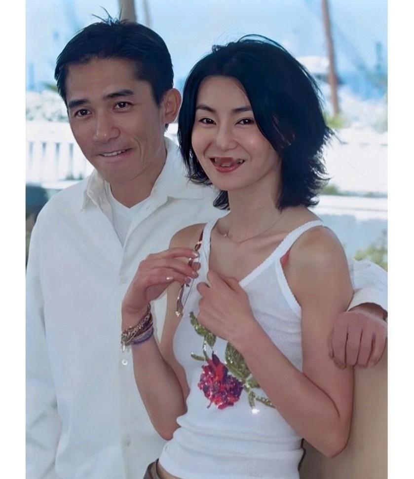 这张照片展现出了张曼玉和梁朝伟2000年在法国戛纳的情景,张曼玉当时36岁,媚眼如丝。梁朝伟38岁,儒雅痞帅。