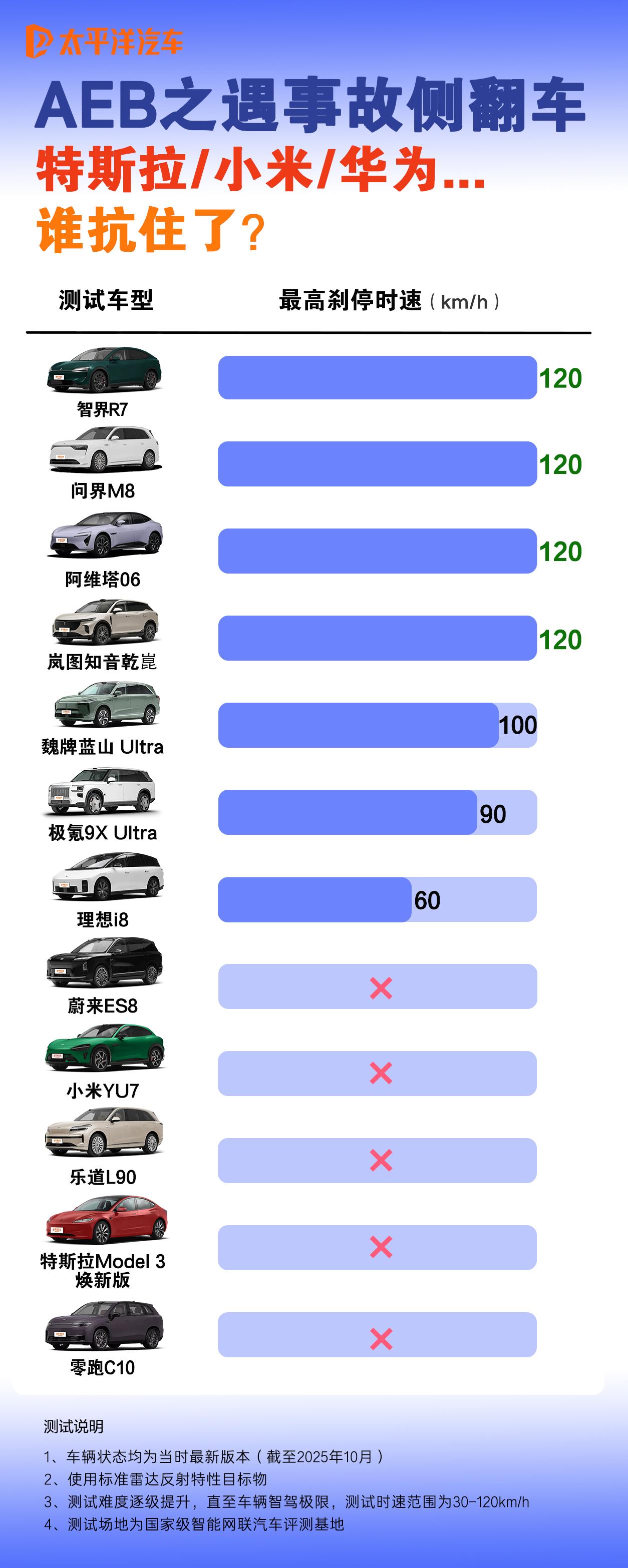 开车时,最可怕的不是流动的车海,而是一个 “突然出现且形态异常”的巨大障碍物——比如,一场刚刚发生、还来不及预警的事故侧翻车。 如果是你,你刹得住吗? 你家爱车的AEB能帮忙吗? 侧翻的车辆轮廓,与算法熟悉的“行驶车辆”或“静止车辆”都不同。 而且它还可能横跨多个车道,形成一种全新的、危险的驾驶环境。 本期智驾大横评 ,这个项目会成为谁的噩梦? 12款热门车成绩单来了!
