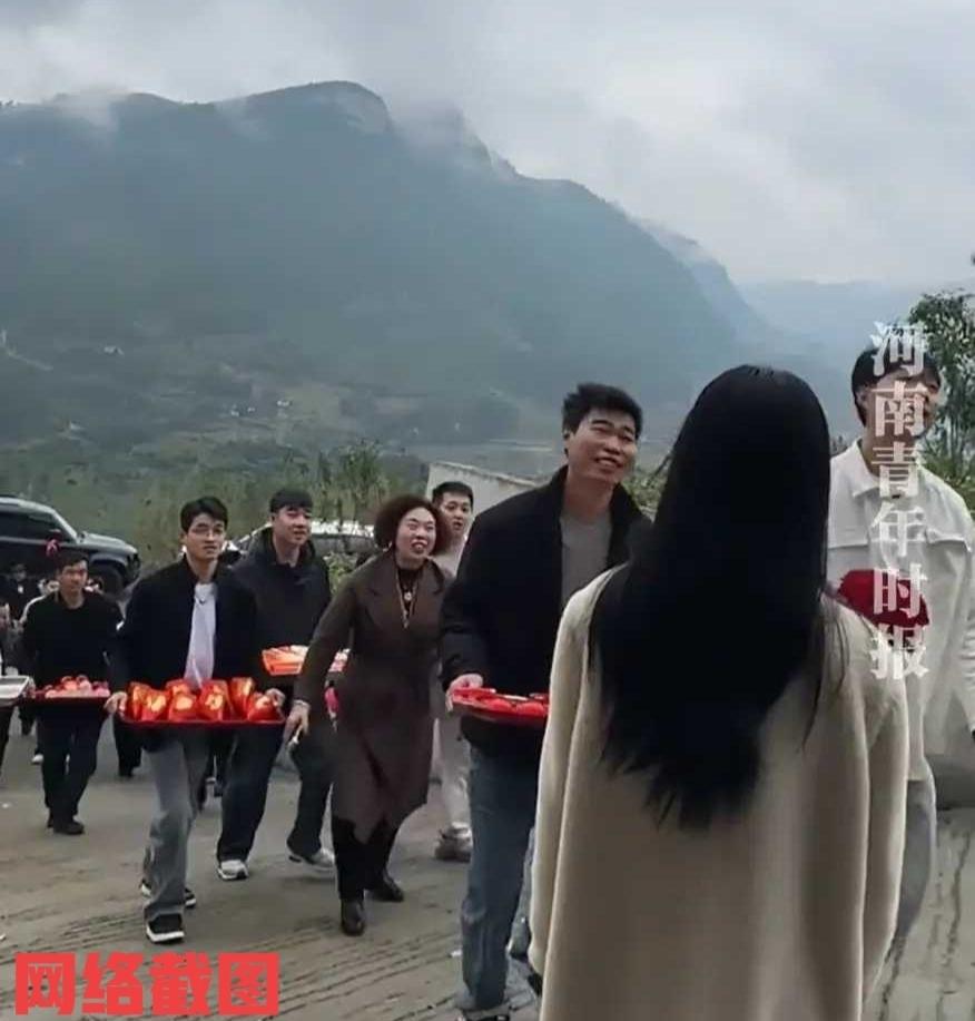 贵州有男子上门给女方家过礼。 当一行人非常热闹来到女方家,只是这一群人谁也没有注意到女方家,此刻女方就站在家门口,却被来得所有人忽略了,这让女方颇为尴尬。 有人说这是为新郎的男子有些紧张,心情激动,真得是没有在意门口站立的新娘,估计此刻新郎心里还在想这什么美事,压根没有在意一旁站立的新娘,这样的事只能说是美妙的失误。 新娘本人估计也会惊讶这群人的动机,一个大活人站在大门口也不瞧一眼吗,心情也是尴尬一笑到神情的懵然,这也应是两人的接触不是太多,加之新郎办事把自己忙晕了头也在所难免。 这只是一段尴尬的奇遇,好在新娘当场也没有生气,但也不可能为这一点的窘态絮叨,发生这一点小插曲也算是给婚礼仪式增添一些故事,为以后的生活带来一点趣味的话题。