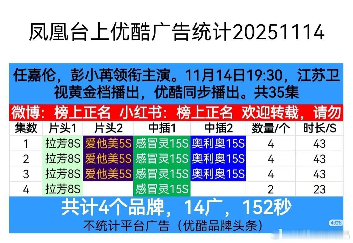 凤凰台上首播4集!首集4广!共14广152秒!