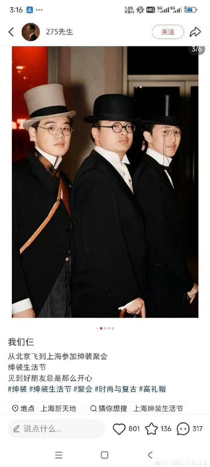 上海绅装圈又开始整活了,这次他们打扮成了刚从“阿波丸”号下来的样子。咱实话实说,这好看吗? 真把自己当日本人捯饬了?还给自己起个“头号大亨”主题,殊不知民国大亨出门都是长袍马褂,哪有这样打扮的。真吃了没文化的亏。 这类人就是我们说的“小资”,他们玩不起真大亨的游艇私人飞机。但是又非要将自己和平民大众区分开来,只能在有限的预算内,折腾一些似是而非的概念,显示自己的独特性。 结果就是老百姓看他们像有病,真大亨看他们像土狗。