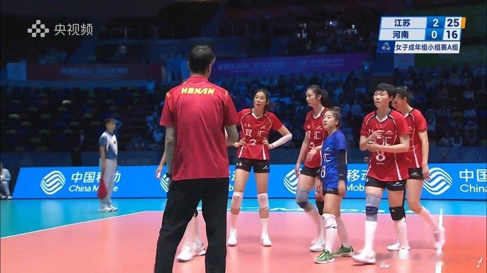 江苏强发轮多,河南在中局过后失控,16-25大比分丢掉第二局。河南女排姑娘们尽力就好。