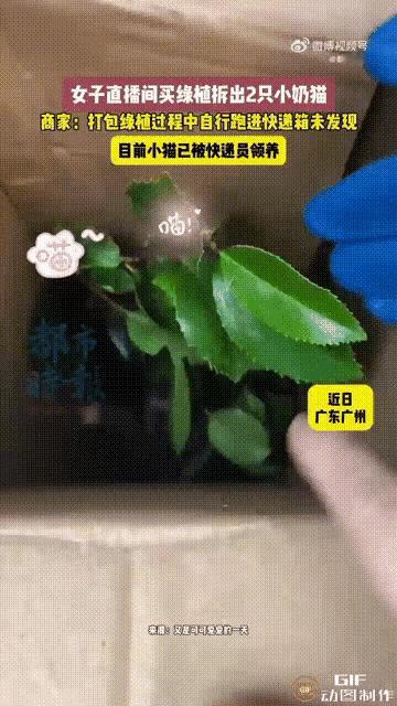 广东广州一名女子在网上直播间购买了一株绿植,谁料收到包裹后,居然听到里面传来小猫的叫声,拆开快递后,发现里面真的有两只小奶猫,之后女子与商家说了这件事,商家表示可能是打包的时候,小猫不小心钻进去的,打包人员并没有发现,由于活物无法再次运输,于是快递员决定收养这两只小猫,商家和女子对此都同意了。 网友评论: 这俩小家伙命真大,幸好寄植物的包裹会开气孔,否则小命难保!还好有小哥哥收留了! 曾经有个中国的小猫,跑进集装箱,漂洋过海历时一个月到了美国,竟然还没有死,也是被一家美国人收留了。 好神奇的缘分,跨越千山万水,来到命中注定的主人身边,好好的爱它们,太不容易了! 买一株绿植还送两只小猫咪,这可是良心商家啦。 所以那些邮寄活物的都是违规!可是为什么还有! 好人一生平安事业成功财源滚滚心想事成梦想成真。