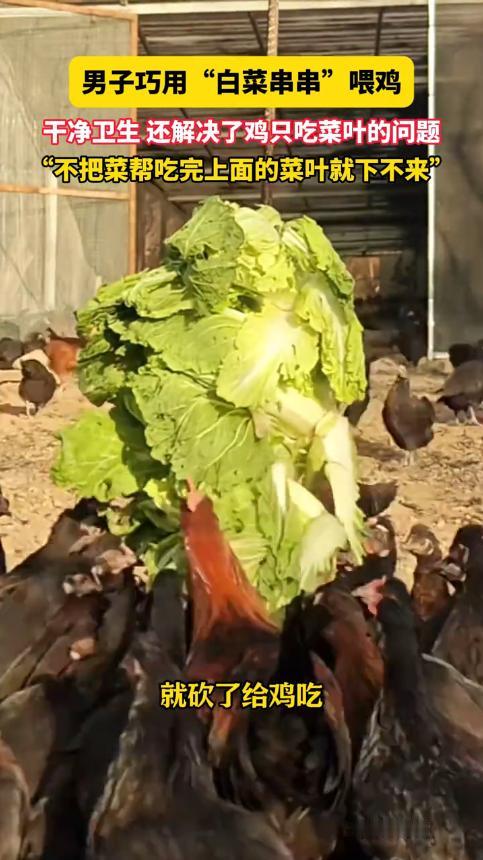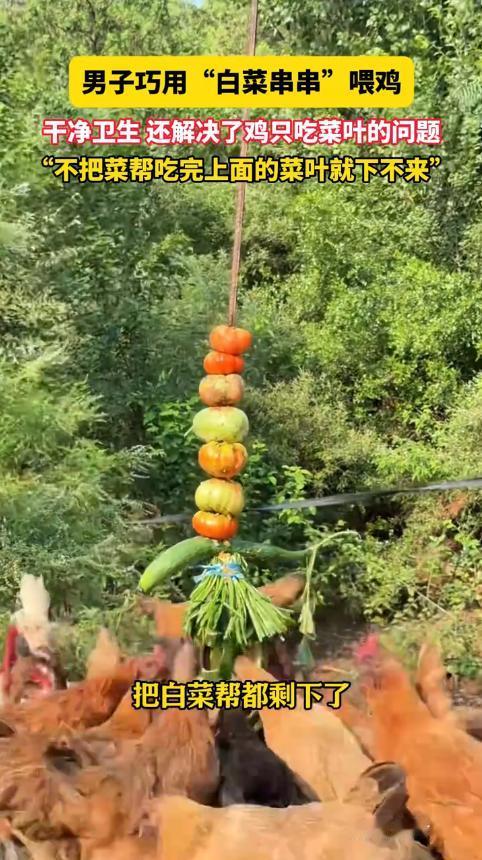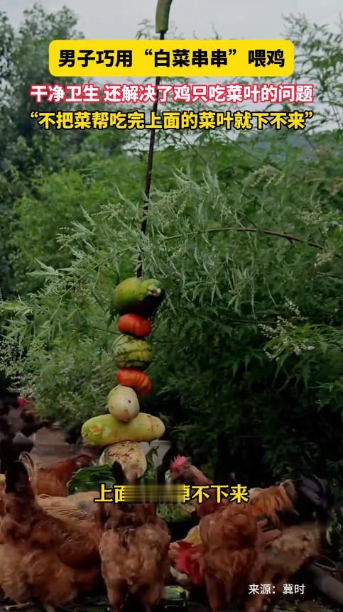 “人怎么能这么聪明!”北京,一男子农场里养了1500只鸡,还种了各种蔬菜,长得不好的蔬菜直接拿来喂鸡,可是鸡只挑菜叶吃,而且在地上踩来踩去不卫生。男子突发奇想,将蔬菜串在铁棍上,只有下面的菜全吃完了,上面的才能掉下去!网友:年轻人的脑子就是好使。 冯先生在农场里养了1500只散养鸡,还种了不少蔬菜,都是纯天然种植的,长得鲜嫩水灵。农场里难免有些卖相不好、或者长歪了的蔬菜,扔了怪可惜的,冯先生觉得这些菜营养一点没少,就干脆拿来喂鸡,既不浪费,鸡吃得也健康,本来是件一举两得的好事。 可没成想,这鸡比人还挑食。每次冯先生把蔬菜扔到地上,鸡群就一哄而上,专挑最嫩的菜叶啄,那些硬邦邦的菜帮子,它们碰都不碰,扒拉到一边就不管了。 时间一长,问题就越来越明显:一方面,大量的菜帮被剩下,堆在地上慢慢腐烂,不仅造成了饲料浪费,还直接影响农场的收益;另一方面,蔬菜扔在地上,鸡群踩来踩去,混着泥土、鸡粪,弄得脏兮兮的,不仅看着恶心,还成了健康隐患,万一鸡吃了变质的菜生病,损失就更大了。 冯先生看着这乱糟糟的场面,头疼得不行。他也试着想过办法,比如把菜帮切碎了混在饲料里,可鸡照样能精准挑出菜叶吃,菜帮还是剩下;又想着多盯着点,可1500只鸡哪看得过来,刚把菜帮归拢到一起,鸡群一哄而上又给扒散了。 鸡的天性就是想吃好的,人的目标是节约成本、保证卫生,这两边就这么僵持着,成了个解不开的疙瘩。 就在冯先生一筹莫展的时候,他突然突发奇想,脑子里冒出个点子:既然拦不住鸡想吃菜叶的欲望,那不如给它们满足欲望的过程加点“门槛”。 他找来了几根普普通通的铁棍,长度大概到人腰那么高,然后把整棵蔬菜从根到叶垂直串在铁棍上,再把铁棍稳稳地插在鸡圈里。 可别小瞧这简单的操作,游戏规则瞬间就变了!鸡们看到铁棍上挂着鲜嫩的菜叶,一个个都急着往上凑,可不管怎么伸长脖子,都只能先碰到最下面的菜帮。 原来冯先生利用了重力原理,只有把下面的菜帮啃干净了,上面的蔬菜才会顺着铁棍往下掉,才能吃到更上面的嫩叶。想跳过菜帮直接吃菜叶?根本不可能! 这一下,鸡群的行为彻底变了。以前对菜帮不屑一顾的鸡,现在为了吃到心爱的菜叶,只能乖乖地从最下面的菜帮啃起。它们围着铁棍,你一口我一口,原本没人要的菜帮,居然被吃得干干净净。 而且蔬菜串在铁棍上,远离了地面,再也不会被鸡群踩来踩去,也不会沾到泥土和鸡粪,鸡圈里一下子整洁了不少,卫生隐患也解决了。 冯先生的这个小发明,效果那叫一个立竿见影。以前每次喂菜都要浪费大半,现在一棵菜从根到叶全被吃得精光,一点都不浪费;以前鸡圈里到处是散落的烂菜叶和粪便混合物,现在清爽整洁,打扫起来都省了不少事。 1500只鸡围着铁棍“撸串”的样子,又好笑又神奇,冯先生把这一幕拍下来发到网上,11月13日被报道后,一下子就火了。 网友们看完视频都乐坏了,纷纷留言调侃:“鸡这辈子估计都没想过,自己还能过上‘撸串’的日子”“这哪是喂鸡,这是给鸡设计了个闯关游戏啊”,更多人则忍不住夸奖:“年轻人的脑子就是好使,这么简单的办法,怎么我就想不到呢”“一根铁棍解决两个大问题,成本几乎为零,太绝了”。 不少养殖户看到后,都表示太有共鸣了,鸡挑食这毛病简直是行业通病,大家为了让鸡吃菜帮,想尽了各种办法,要么切碎混合,要么添加饲料,效果都不理想。冯先生这个办法,不仅成本低到可以忽略不计,操作还简单得不行,随便找几根铁棍就能搞定,立刻被同行们看作是值得推广的行业智慧。 现在冯先生的农场里,每天都能看到鸡群围着铁棍“撸串”的热闹场面,既解决了浪费和卫生问题,还成了农场的一道特色风景。这件事也告诉我们,遇到问题的时候,硬碰硬往往不是最优解,有时候换个思路,顺着事物的规律来,设计一个简单的规则,可能就能起到事半功倍的效果。 一根小小的铁棍,看似不起眼,却解决了养殖户们头疼已久的难题。冯先生的这个小创新,也让大家明白,真正的智慧往往不是高大上的复杂方案,而是源于生活的观察和巧思。 这种不跟天性对抗、而是顺势引导的办法,不管是用在养鸡上,还是用在生活和工作中,估计都能派上用场。网友们的夸奖真的一点都不夸张,这样的脑子,确实太好使了! 信息来源:信息来源:《男子分享“白菜串串”喂鸡,干净卫生,看着还很解压,鸡:有生之年撸上串儿了,网友:家里最没用的我刷到了最有用的视频》洛阳网