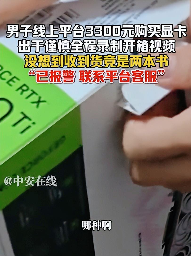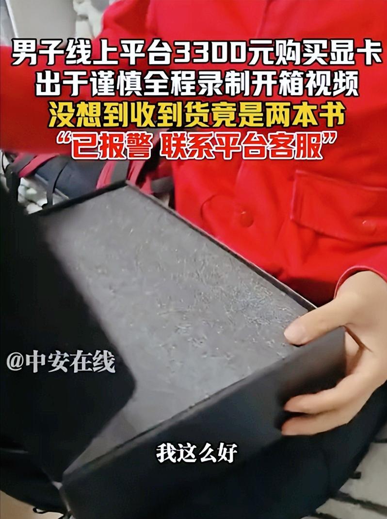 网友花3000元买显卡,打开一看是两本书,看懵了!现已报警,联系客服! (来源:中安在线) 一网友想趁双十一特价,购买一块 RTX 5060Ti 显卡。收到货以后,他有点不放心,为了确保没有买到假货,全程拍摄开箱过程。 没想到,当包裹一层一层打开后,心心念的显卡没有出现,只留下两本书。 小伙一下子懵了,立即联系平台客服,并报警。 这种情况真得很少见。 这位网友在购买这块显卡前,可能知道会被骗。因为按照正常的网购,我们打开商品时,都不会去拍摄开箱的过程。除非你是数码博主,需要拍摄开箱视频。 我从网上买过好几次笔记本电脑,都没有想过要拍摄开箱的视频。 按照网上的售价,一块 RTX 5060Ti 显卡的售价大约3200元以上,也有3000元以下出售。 按道理来讲,他不应该买到假货,花3000元完全可以从正规的大平台上买到正品。 还有一种解释,商家可能也运营攒机业务,技术人员将 RTX 5060 Ti 装机后,觉得盒子挺好的,当成收纳盒,放进两本书。这位网友下单时,工作人员没有注意,将它当成好的显卡发货了。 按照正常情况,与客服进行沟通,解释清楚,会补发商品,毕竟这种事情对于商家来讲,是一个大事情。 这也告诫我们,购买比较昂贵的电子产品时,应当选择大平台和有信誉度的商品。 不要像这位网友一样,购买前有忧虑,结果担忧变成了现实。