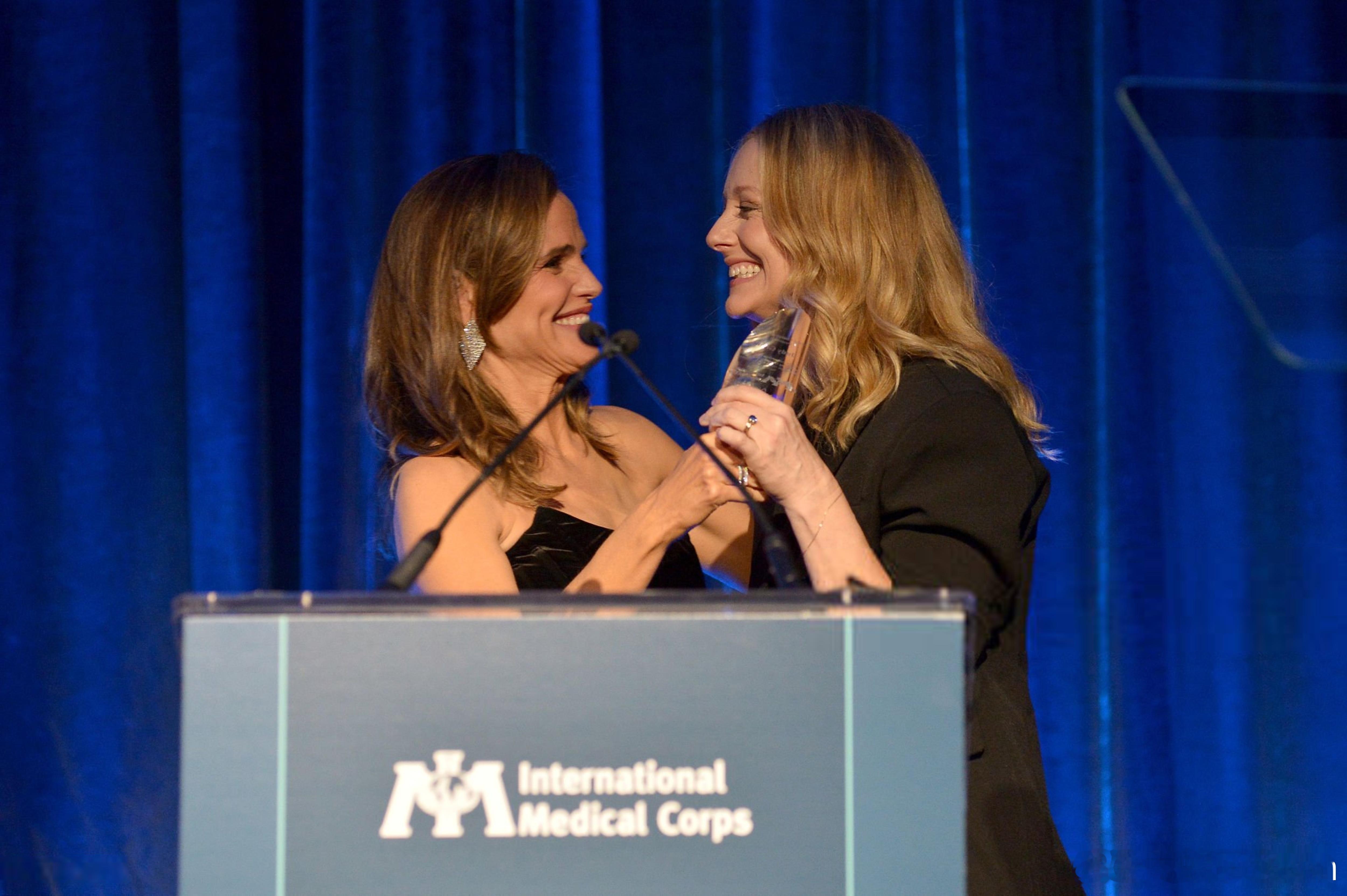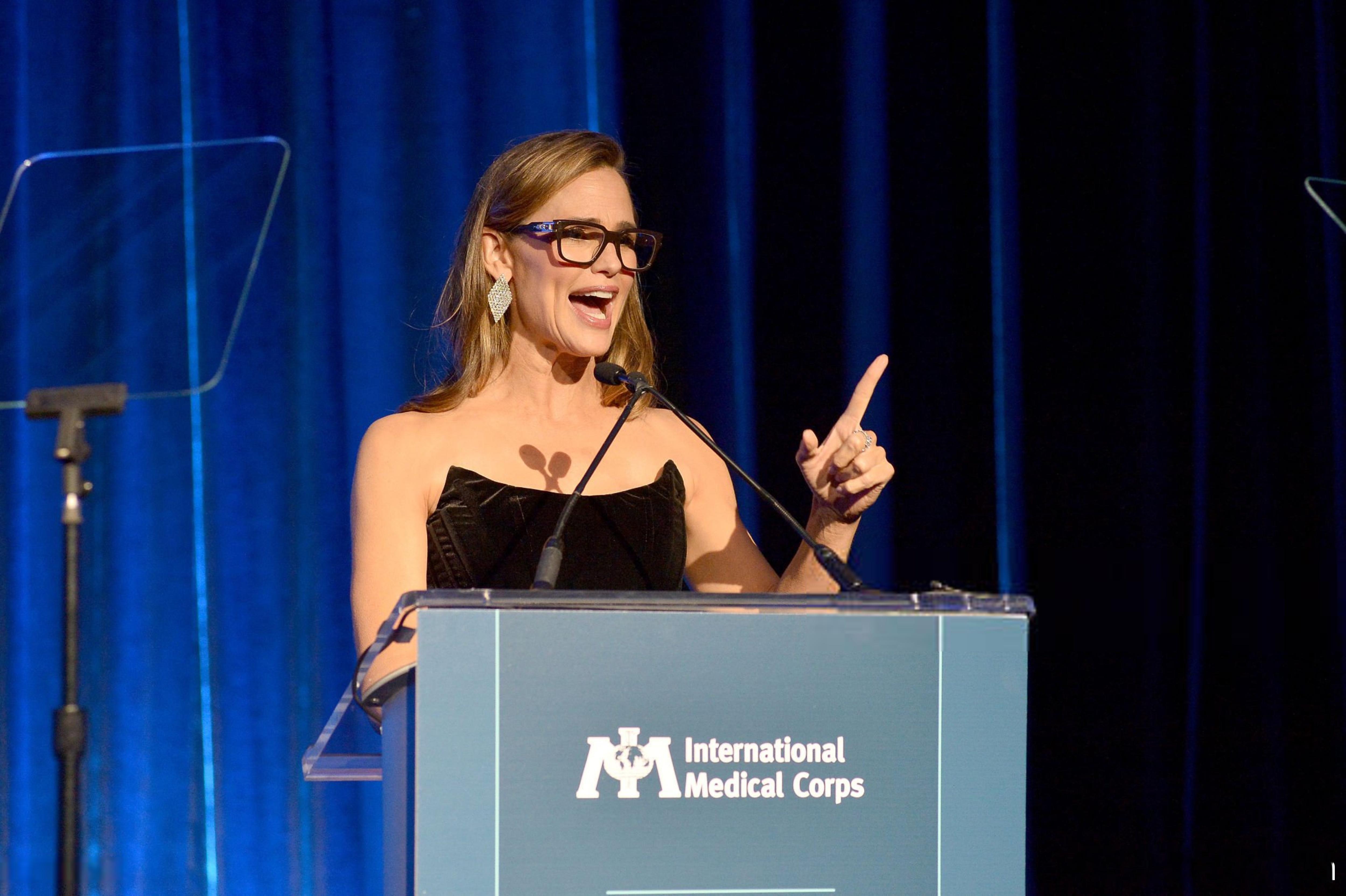 詹妮弗加纳在洛杉矶出席国际医疗队的年度颁奖礼,加纳姐登台为好姐妹Judy Greer颁发Global Champion奖表彰她长期以来对国际医疗队的支持