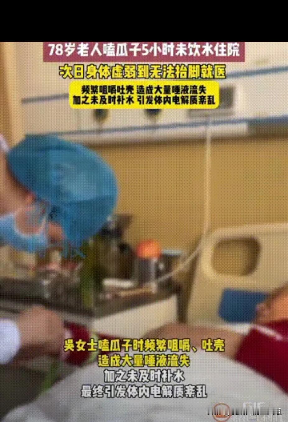 湖北武汉一位78岁的老人,她在家一边看电视一边嗑瓜子,直接嗑了近5个小时没有喝水,刚开始没出现什么问题,谁料到了第二天,她就虚弱到无法抬脚,被送医后确诊为电解质紊乱导致的低钾血症。 医生检查后发现,老人血液中的钾含量偏低,这正是她突然虚弱无力的根源。嗑瓜子的行为看似平常,背后却藏着风险。连续几个小时嗑瓜子,会消耗大量唾液,有说法是嗑250克瓜子就可能损失约2500克的津液。这位老人恰恰在嗑瓜子时没有喝水补充水分,大量唾液流失又未及时补水,就容易引发体内的电解质紊乱。电解质就像我们身体里微小的电流,钠、钾这些离子维持着心脏跳动、肌肉运动的正常功能,一旦失衡,机器就可能突然失灵。对于年轻人来说,身体调节能力强,可能只是感觉口干舌燥。但老年人身体机能减退,代偿能力弱,同样的损耗下,更容易出现严重症状,甚至像这位老人一样无法行走。 这件事值得我们深入思考。表面看是瓜子惹的祸,实际上暴露了老年人健康管理的脆弱性。老年人由于牙口不好、消化功能减退,本身就容易营养摄入不足。很多老人像这位婆婆一样患有慢性病,平时可能严格控制盐分摄入,夏天排汗多,加上长时间嗑瓜子导致唾液大量流失,就容易出现低钾血症、低钠血症等电解质紊乱问题。部分降压药含有利尿剂,长期服用也会使体内钾离子悄悄流失。家人往往觉得老人在家嗑瓜子看电视是安享晚年,却忽略了这些细微生活习惯可能成为健康隐患。 我们有必要重新审视对老年人生活细节的关注。老人电解质紊乱的症状可能很不典型,初期也许只是乏力、头晕、食欲不振,容易被误认为是年纪大的正常现象。严重时则可能出现如这位老人的突发性肢体无力,甚至更有案例中出现谵妄、休克等危险状况。预防远比治疗简单,日常注意均衡饮食,多吃新鲜蔬菜水果补充钾元素,适量饮水,避免长时间从事可能导致脱水(如持续嗑瓜子而未饮水)的活动,对老年人至关重要。 各位读者你们怎么看?欢迎在评论区讨论。