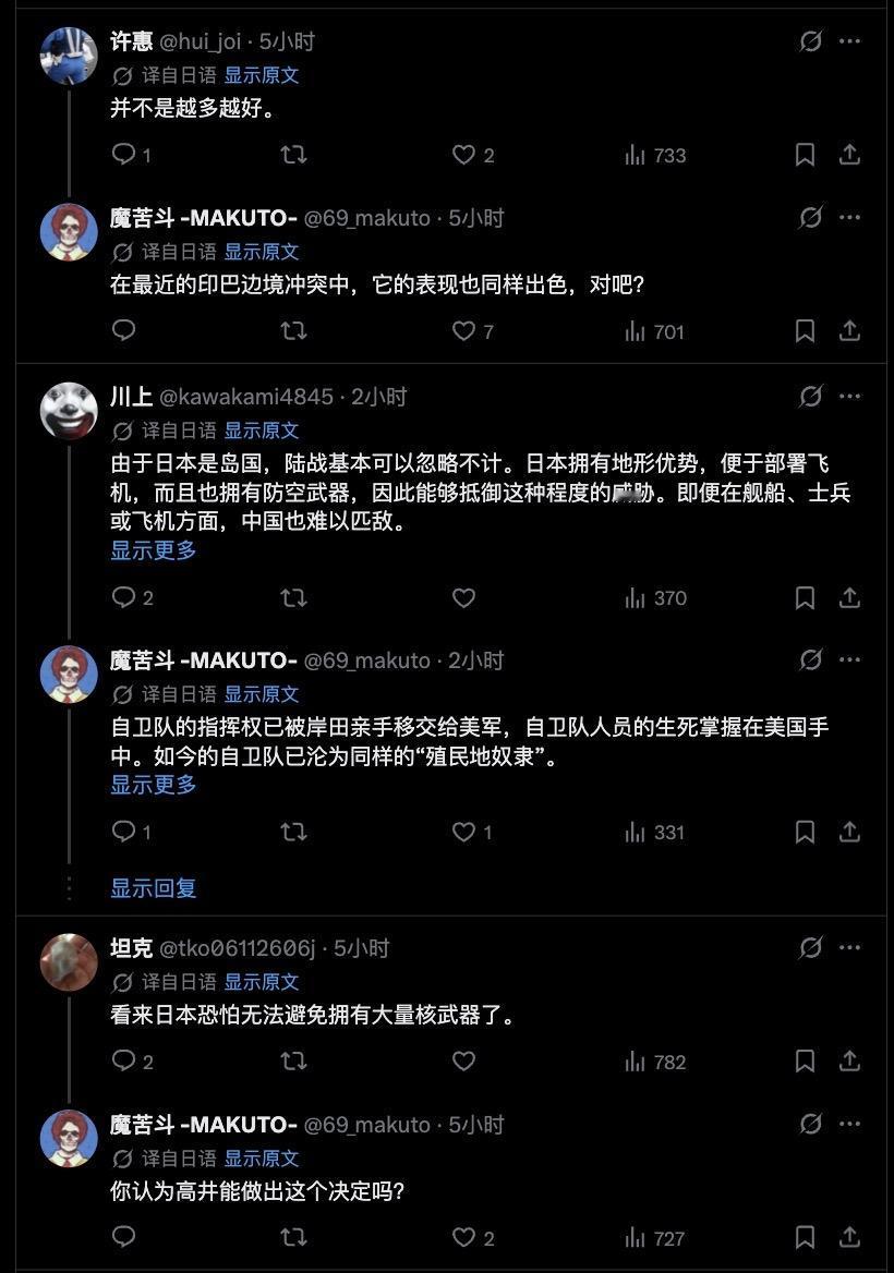 日本有人做了个中日军事力量对比,那些嘴硬的日本人直接破防了! 日本跟中国比军事力量完全不是一个级别的。有日本网友说当你在叫嚣保护台湾时,面对中国强大的军事力量,你愿意去自卫队从军吗?他们不敢说话了。 也有日本网友在反思,局势持续升级,可能导致外交中断,甚至切断经贸往来,但中国可以没有日本,而日本无法承受没有中国。 日本人不是很嚣张吗?日本人,千万别怂! 中国军事实力 日本军事实力