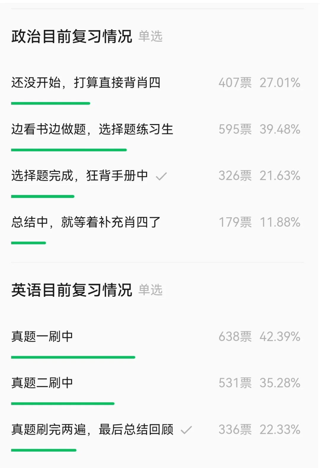 最后十几天了,给大家分享一下目前大部分同学的复习进度,大家也可以留言说说自己的进度!
