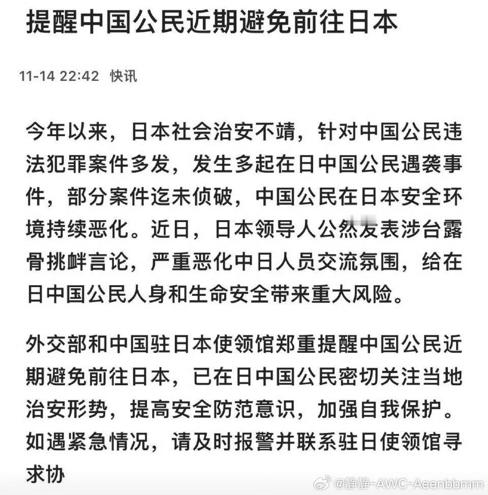 各位计划去日本的友友慎重考虑!外交部明确提醒:近期避免前往!核污染水排放、频繁地震、野生动物出没,多重风险叠加,这样的出行真的不省心!没必要拿安全冒险,暂缓行程才是明智之选!日本旅游提醒