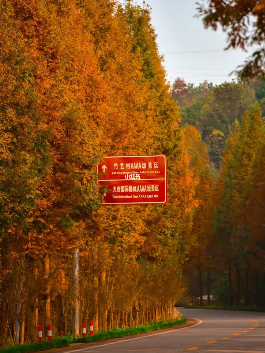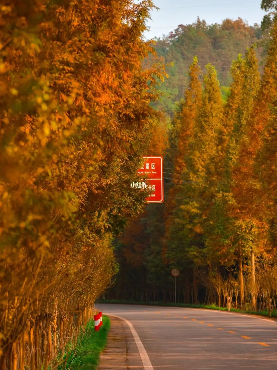🎈从宝锋村村委会到白塔湖这一段路,绵延数公里公路两边全是水杉,这个时节水杉已经全部变红,路面也铺上了一层红红的落叶
