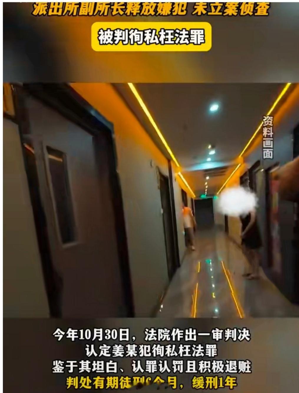 【】近日,盘锦市盘山县法院披露一起案件:姜某在任职派出所副所长时,带队在宾馆抓获“卖淫女”马某和“组织者”韩某。姜某明知韩某具有犯罪事实,在收受韩某给予的5万元后,将韩某、马某二人释放,且未开展立案、侦查活动。因姜某如实供述、认罪、认罚且退缴赃款,最终以徇私枉法罪被判有期徒刑6个月,缓刑1年。身为民警,而且还是干部,知法犯法,本应罪加一等,最后就“自罚三杯”了事,不知道这种“纵容性”处罚在国内是否普遍?即便是现在尚未普遍,不过,很快也就普及了,毕竟“榜样的力量”是巨大的。