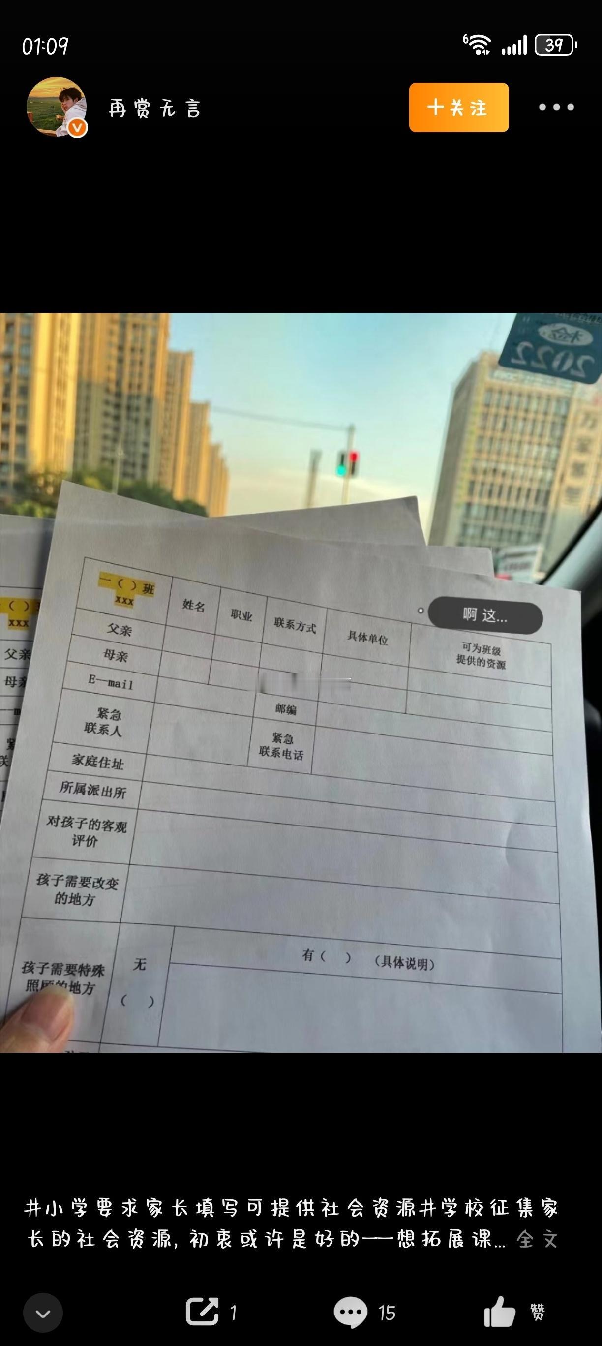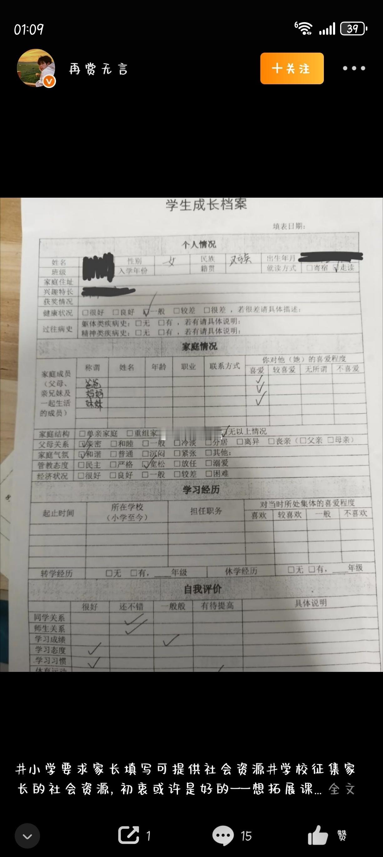 小学上学关家长填这些报告什么事越来越搞不懂这些学校了总是整些让家长填的报告出来