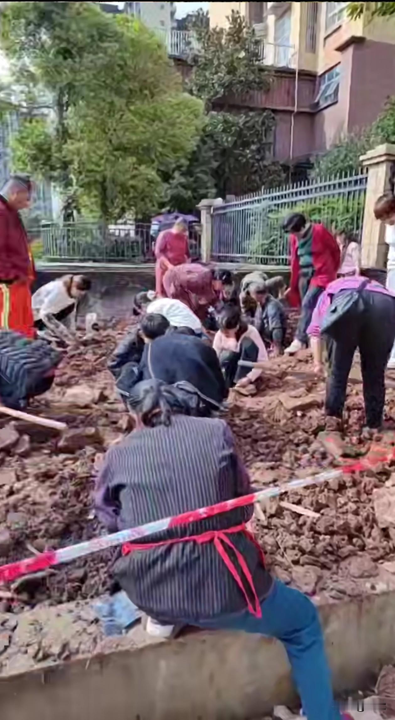 重庆吴家大院旁的空地最近可热闹了。 网传这里出现了铜钱 甚至有人说挖出了其他的东西 这可把大家的热情点燃了 视频里 广场旁的泥地挤满了人 一个个拿着锄头热火朝天地刨地 锄头都刨出火星子了 还有人真找出了几枚铜钱 这让大家的干劲更足了 社区工作人员出来回应 所谓“宝物”只是生锈的铜钱 部分居民也把捡到的铜钱归还了 有关人士说 私自挖掘地下矿产和文物是违法的