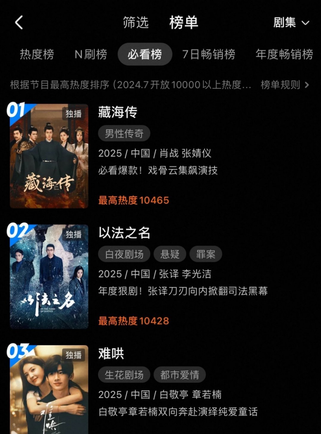 肖战《藏海传》播出半年就进入n刷榜,要知道之前进n刷榜的剧集都是至少播出5年以上的口碑长尾老剧。至此,《藏海传》已经拿下👖各个榜单前列!军书十二卷,卷卷有战名