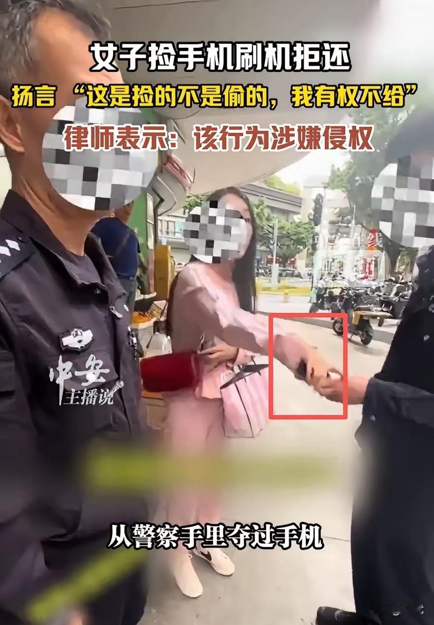 嚣张女子捡手机拒归还,竟对警察叫嚣:捡的不是偷的!