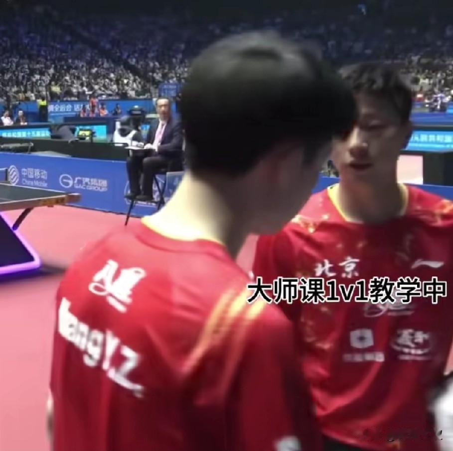 我觉得北京队教练都是多余的,哈哈! 龙队别看采访时谦虚, 说他跟着黄友政打, 但到了球场, 一点也不含糊, 一句:你想好怎么发球了吗? 那凌厉的眼神, 小黄当场就宕机了。 然后龙哥再给他解释, 应该怎么发球? 这教练就没插上话!