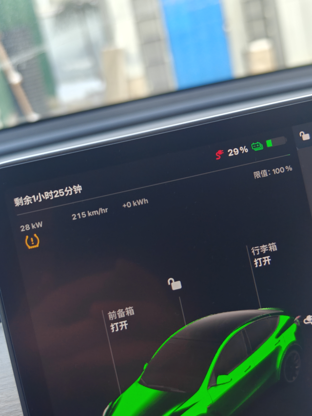 最残酷的天气来了续航5折 早上出发时57%剩余电量提前打开暖风,预热,预热十几分钟消耗6%的电,51%电量出发,行驶42km后,消耗了19%的电,能耗接近百公里25度电,刺激,刺激。 刚才充电前,原地导航去超充预热15分钟,插上快充速度只有28kw