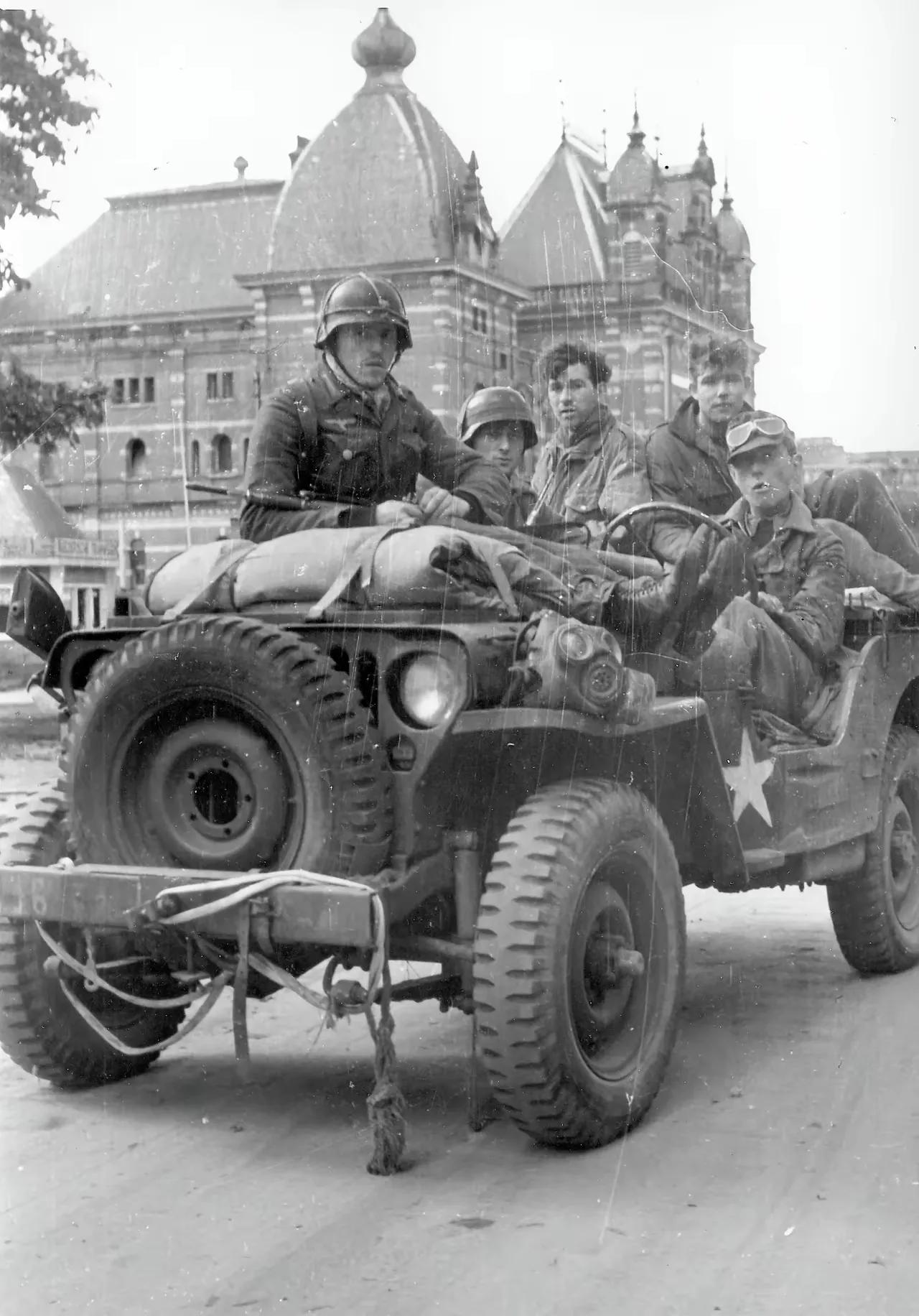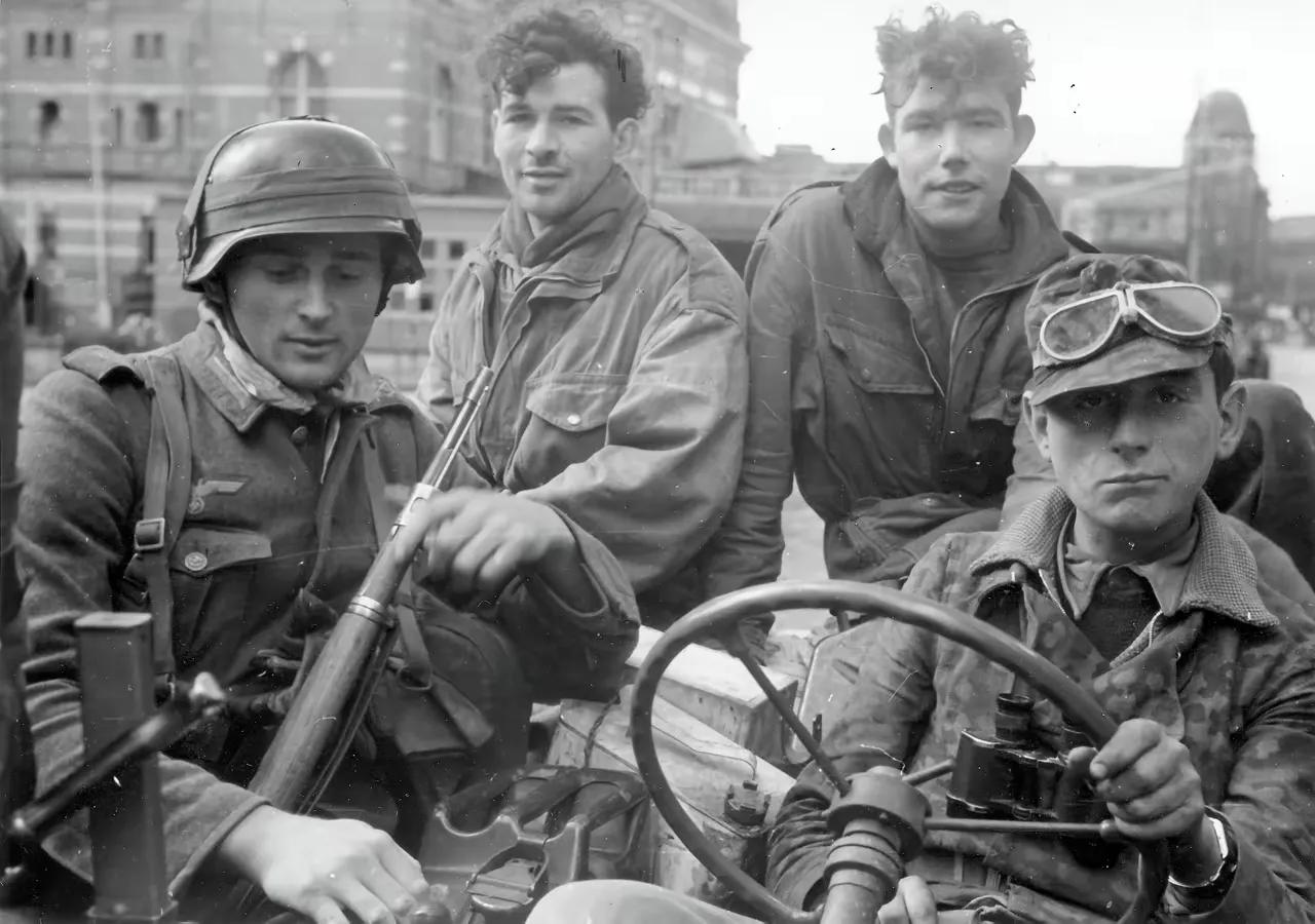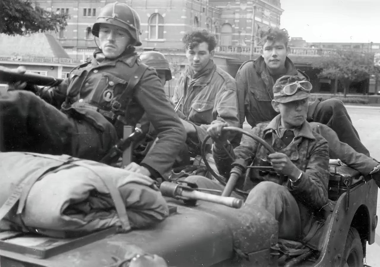 在“市场花园”行动期间,有张照片里两名被俘英国士兵和德军同坐吉普车,还面带微笑,这场景真让人摸不着头脑。 “市场花园”行动堪称惨烈,号称盟军伞兵滑铁卢。阿纳姆战役中,一万零六百伞兵参战,最后仅两千三百人回来。战斗里,英军被围困四天,第1师第2营先入城守楼和桥,可滑翔机受损、重武器未到、无线电故障,补给也跟不上,只能靠白刃战。美军渡河虽英勇但也伤亡高昂。那两名微笑的英军士兵,或许是看透了战争的残酷,以微笑来应对这悲惨的局面,又或许是用这种方式保留最后的尊严。