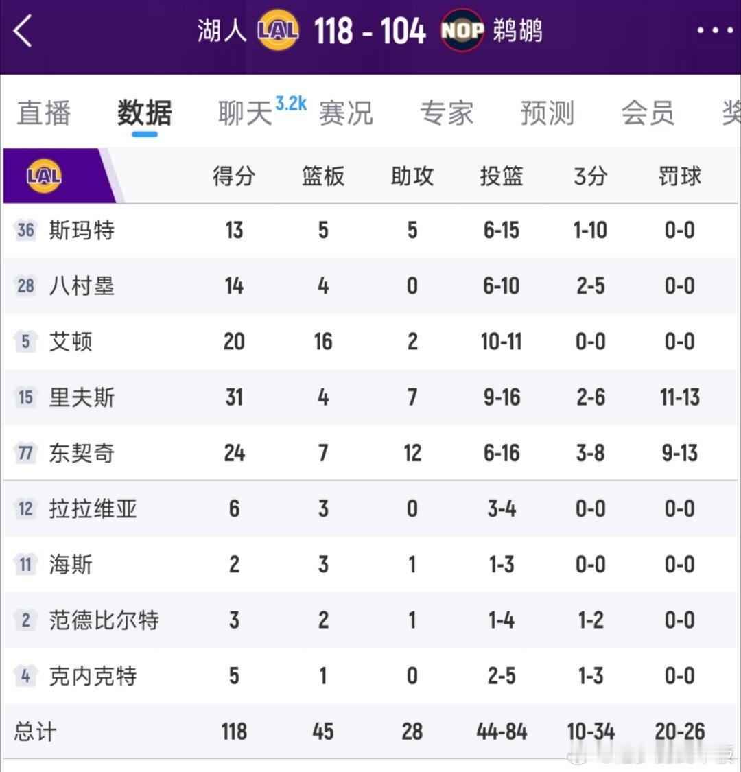 净胜分14!湖人客场118-104战胜鹈鹕,如何评价本场比赛?