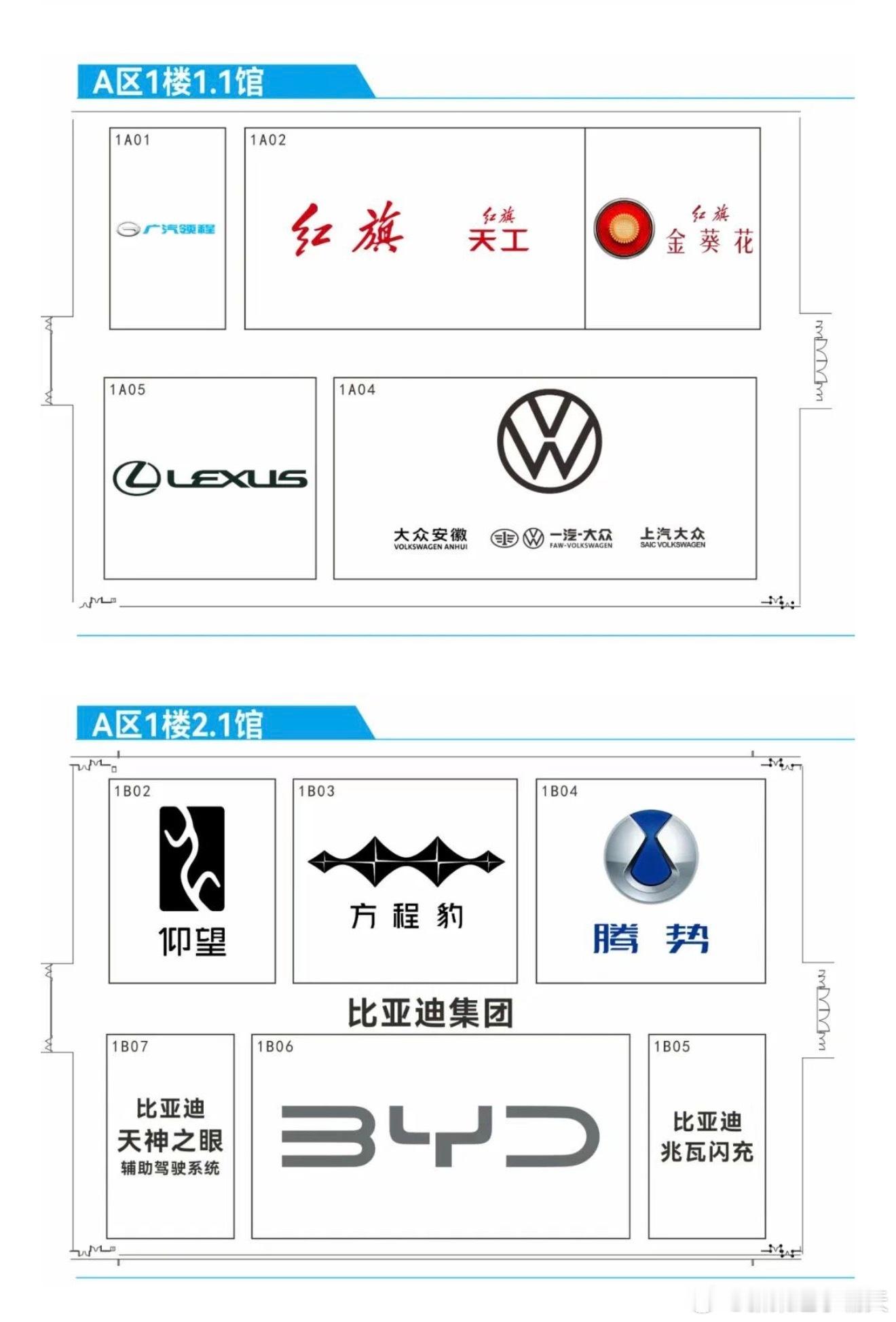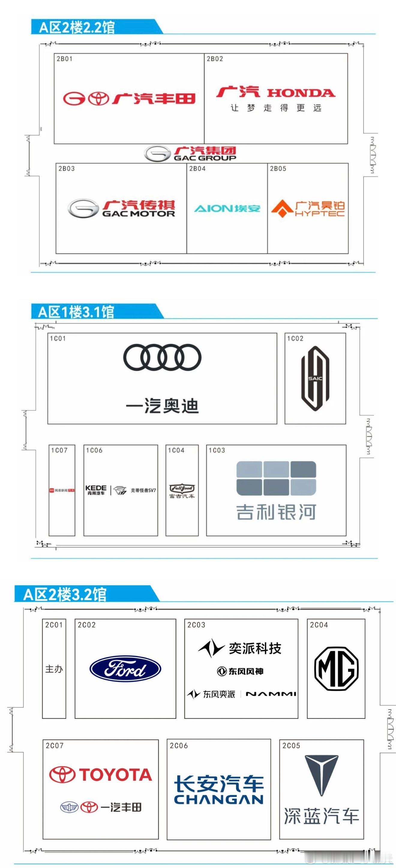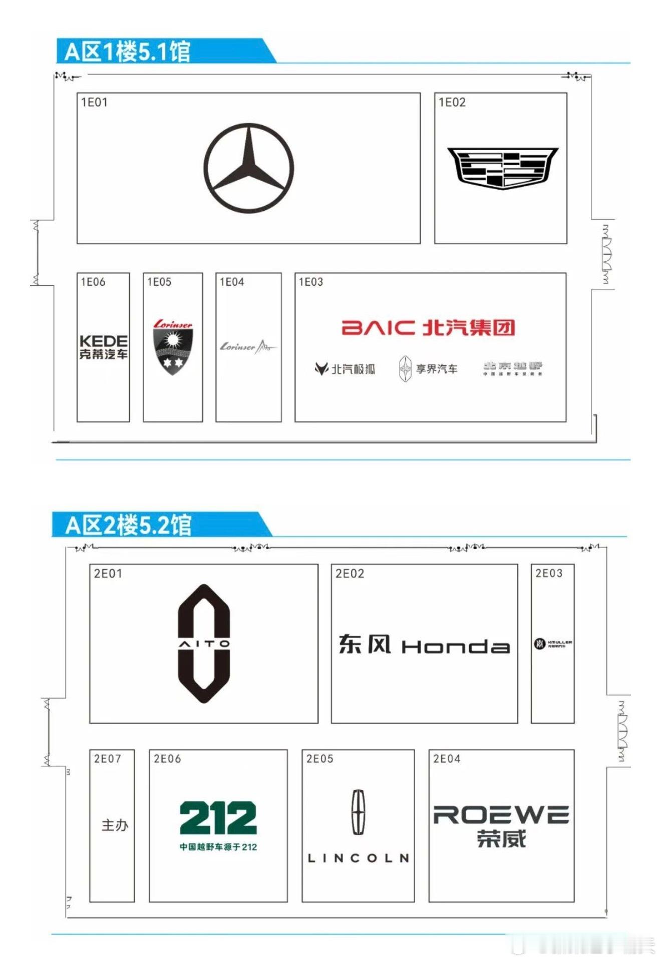广州车展展位图出来了~有几个馆有点意思:-A区5.1&5.2:一楼是北汽(包