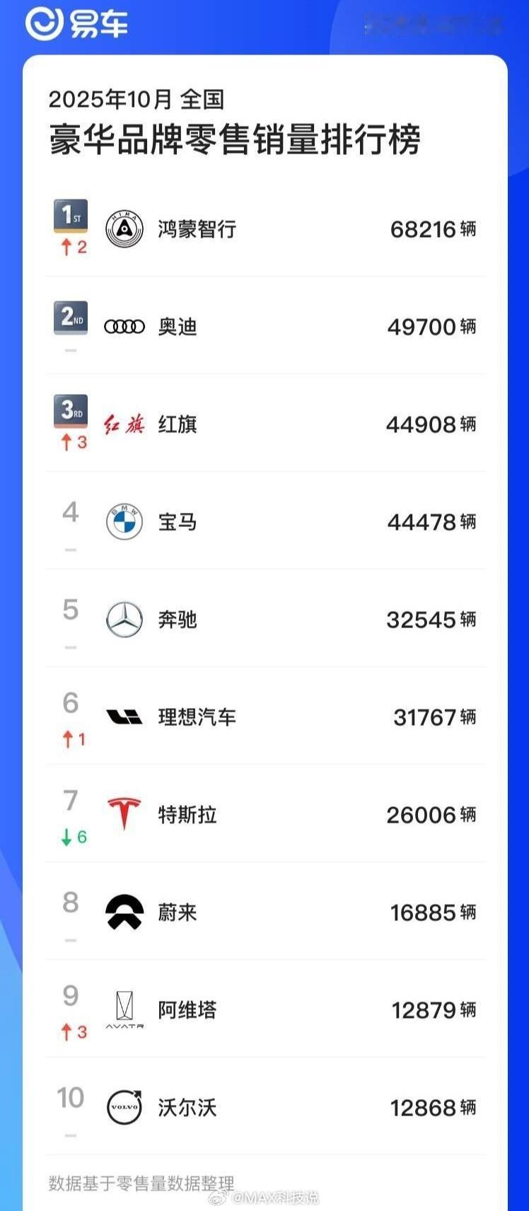 易车的10月豪华品牌销量排行榜红旗真的算豪华品牌吗?走量的全是20万以下另外阿维塔豪华,极氪、小米不豪华……