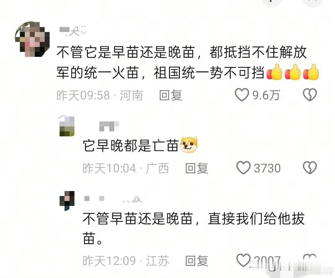 都在传! 甭管她是早苗还是晚苗,老苗还是嫩苗, 都🉐把这一颗苗给拔了😖!统一大业,势不可挡!