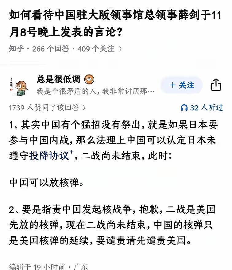 哪些算是日本军国主义分子?这个家伙是一个!日本议员吉田康一郎宣称:签署日本投降协议的是中华民国,而非1949年成立的中国。看来只能以日本军国主义的逻辑,和日本打一仗,等高市早苗签署投降协议,这些人才会服气。 有网友建议直接使用原子弹,还找出了法理依据:日本未遵守二战停战协议,这意味着二战仍在延续,既然美国此前用过原子弹,那么再次使用也合乎规则。