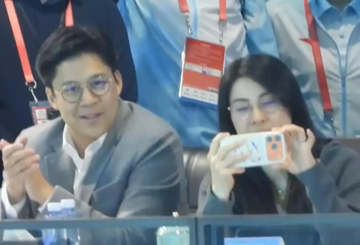 郭晶晶终于大方一次,和老公一起看全运会,用上17pro了还是最好看的爱马仕橘……