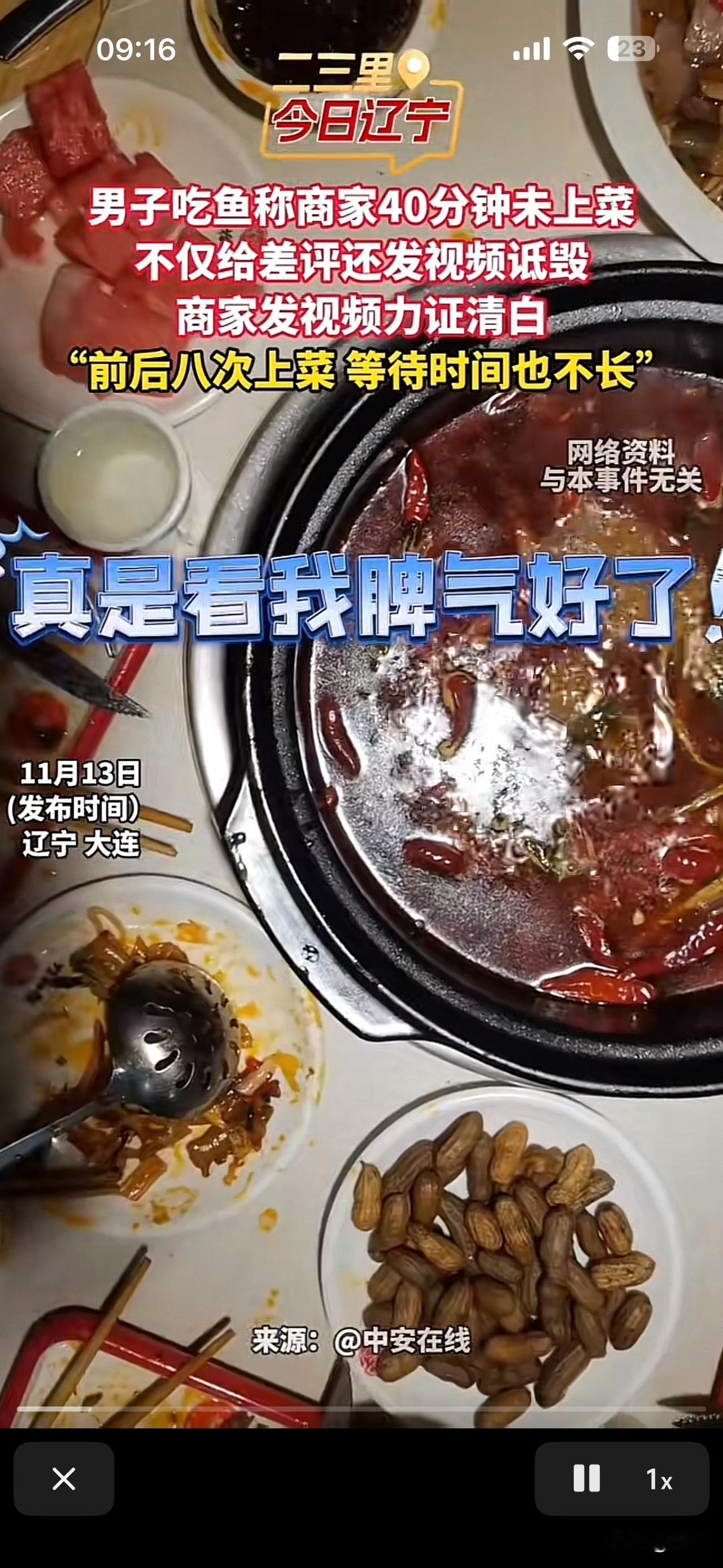 在大连某地,男子称吃鱼商家40分钟没有上菜,不仅差评还发视频诋毁。结果商家发视频力证清白。前后8次上菜,前后时间也不长。 针对此事,打脸用户即看到了吗?大家怎么看?