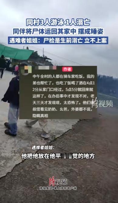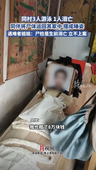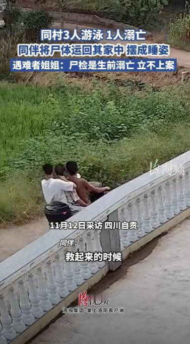 四川自贡,3名男子一起到水库游泳,其中一名男子溺亡了,另外两名男子就骑着车,将已故男子夹在中间,骑车的男子身体往后靠,让已故男子靠着他,后面的男子就扶着已故男子的头,两人骑车带着他回家,将他伪装成睡姿,然后就害怕得赶紧骑车扬长而去,3天后,已故男子身体高度腐烂,家人闻到臭味之后才发现。   近日在一条公路上出现了让人脊背发凉的一幕,一辆摩托上挤着三个人,前座男子后背往后靠,怀里 “倚着” 一个人,后座男子一只手死死扶着那人的头,摩托在路面颠簸着往前开。   没人知道,被夹在中间的人,早已没了呼吸。   事情的起因是三名男子在家里面闲着没事干于是就商量这之一起去家附近的水库游泳,可令他们意想不到的是,后来一名男子下去之后不幸溺水死亡了。   按理说,出了这种事,第一反应该是报警、呼救,想办法救人,可剩下的两个同伴,既没报警,也没找帮手,反而把已经没气的朋友抬上摩托,就这么夹在中间往家送。   回到家,他们没联系死者家属,也没上报情况,反而把人放到床上,摆成睡觉的姿势,想假装成正常睡着的样子,大概是被恐惧冲昏了头,两人没多停留,匆匆就离开了,留下尸体孤零零在屋里。   直到三天后,死者家里飘出腐败的气味,家属才察觉不对劲,推门一看,瞬间崩溃,好好的人怎么成了这样,失踪这么久,同伴居然半个字都没提。   家属又气又悲,这事一曝光,网友炸开了锅,几乎所有人都在骂那两个同伴,见死不救就算了,还藏着掖着,太冷漠了,哪怕当时报个警,也不至于让家属这么痛苦。   警方很快介入调查,追问事发时到底发生了什么,有没有其他人在场,为什么不第一时间处理。   面对调查和各方压力,其中一个涉事男子终于松了口,说自己知道错了,没及时告诉家属,也没尽到救助和通知的义务,后来他给家属赔了 8 万块,说是补偿精神损失和后事费用。   可这点钱,怎么也换不回一条人命,只能稍微缓和点矛盾。   其实不管是出于恐惧还是慌乱,这两个同伴的做法都让人无法理解,不及时报警、不通知家属,反而想着掩盖,既丢了道义,也可能触犯法律。   他们不仅没给逝者尊严,还让家属承受了更多痛苦,这是比死亡本身更残忍的 “二次伤害”。   现在案件还在调查中,到底是单纯的意外溺亡,还是有其他原因?这两个同伴该承担什么责任?     此事给大家敲响警钟,野外游泳本就暗藏风险,如果遇意外,当机立断报警并联络家属,一定不要因一时慌乱而逃避,否则错上加错,终将追悔无及。   对此,你还有什么看法呢? (信息来源 :洛视频 )