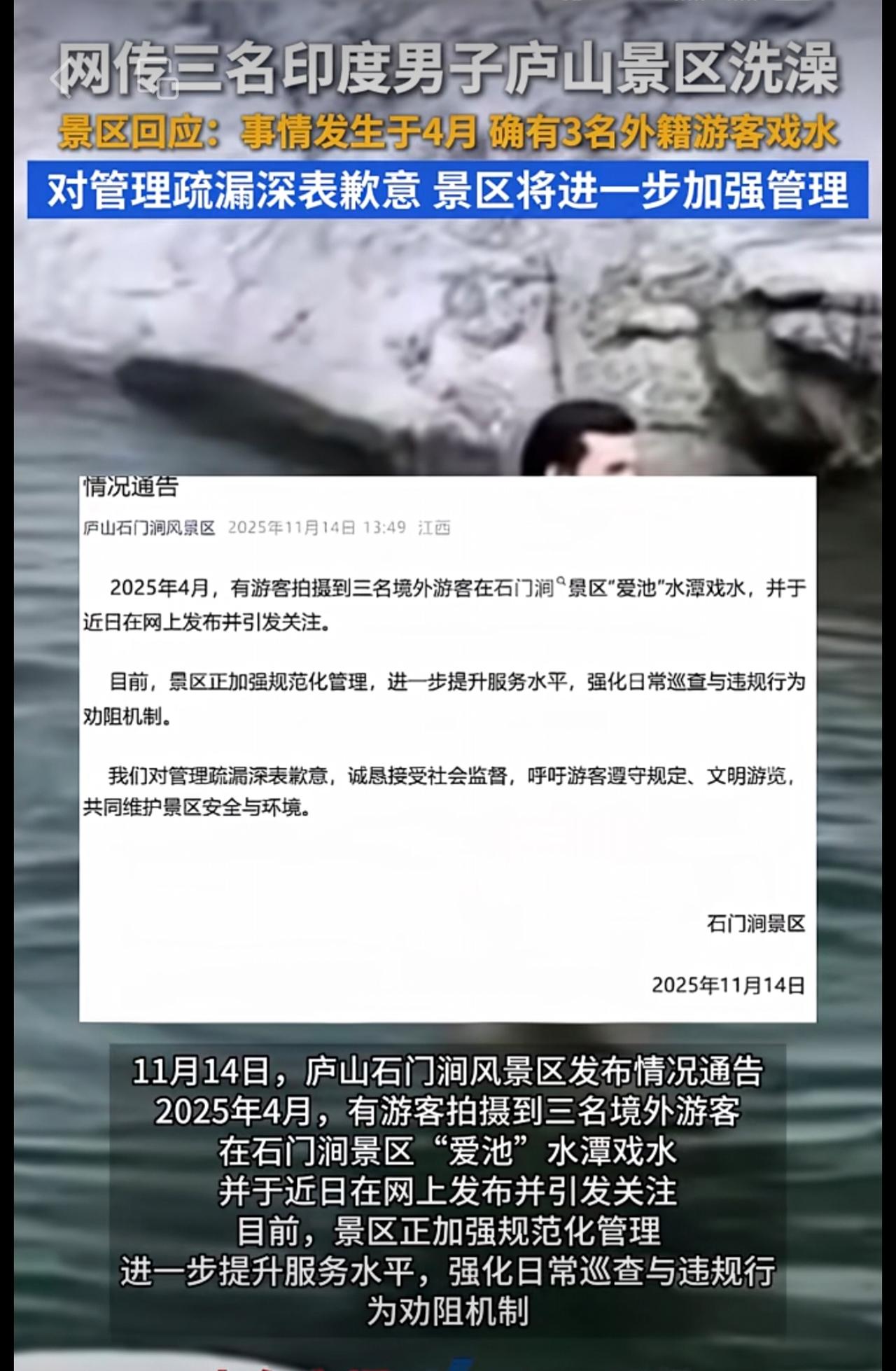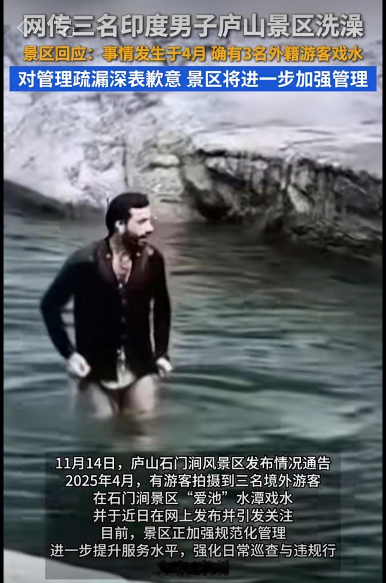 景区回应:事情发生于4月 确有3名外籍游客戏水,对管理疏漏深表歉意 景区将进一步加强管理。